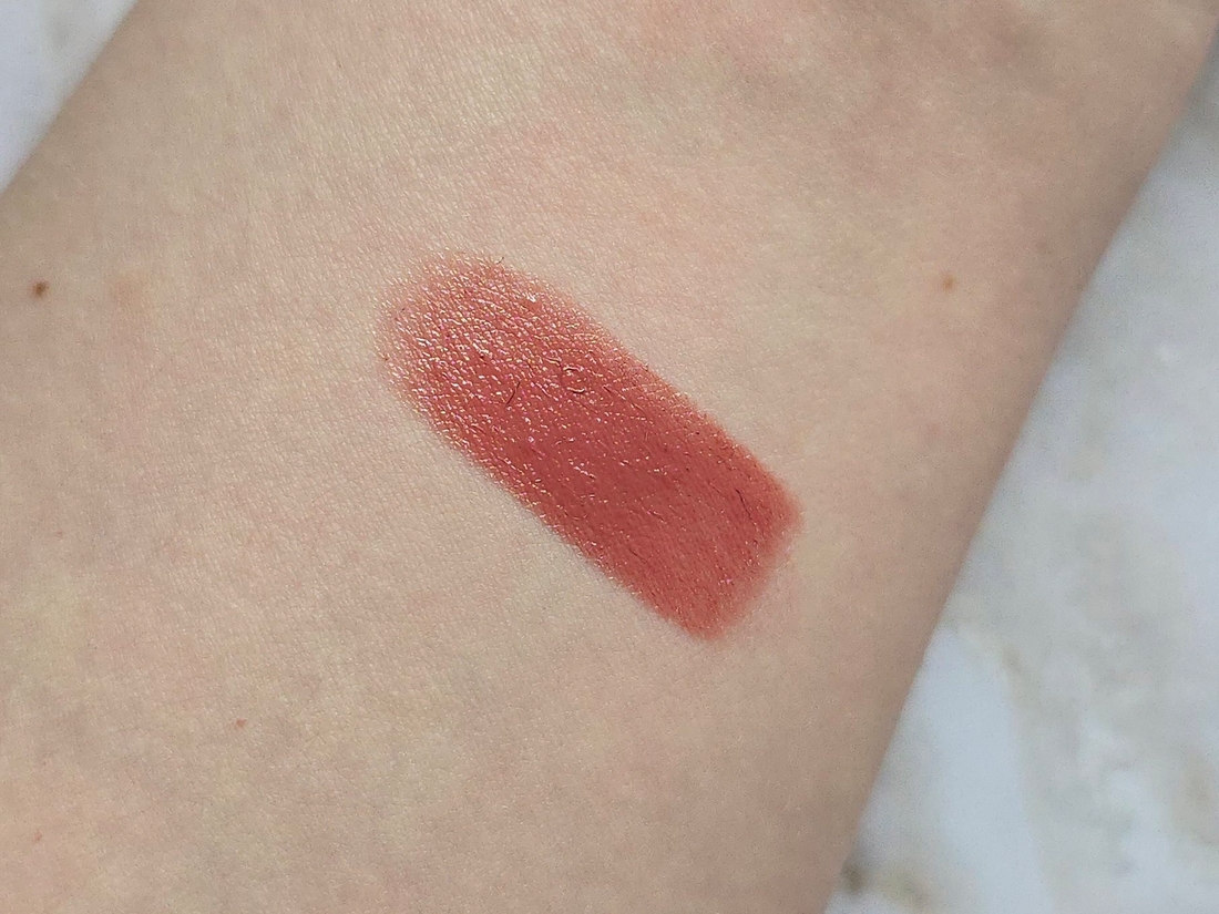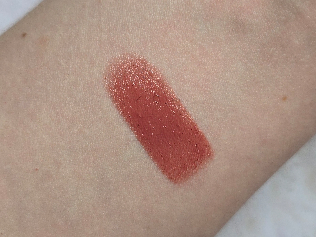 Свотчи тоже показывают её более коричневой, но это все неважно, на губах более показательно. Здесь в один слой.