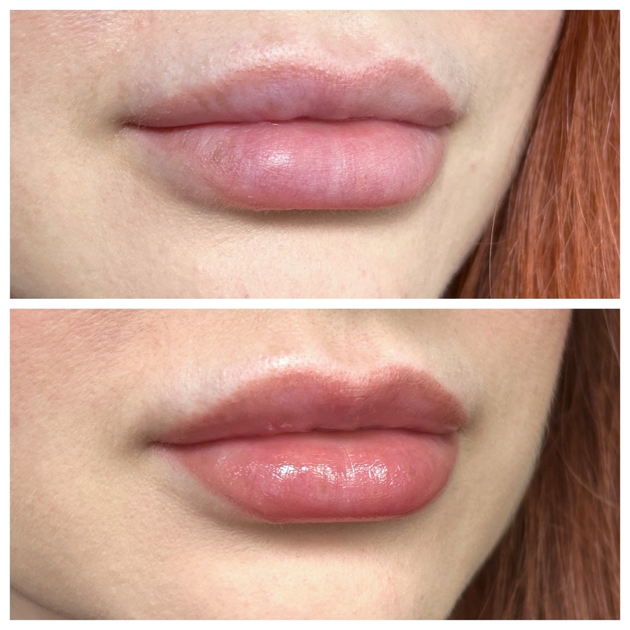 Пигментация полупрозрачная. Для меня это скорее плюс, терпеть не могу яркие фуксийные или красные тинты с темной полосой на слизистой.