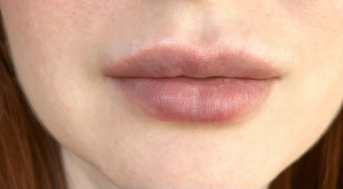 На губах с карандашом по контуру оттенок Nude Pink в два слоя: