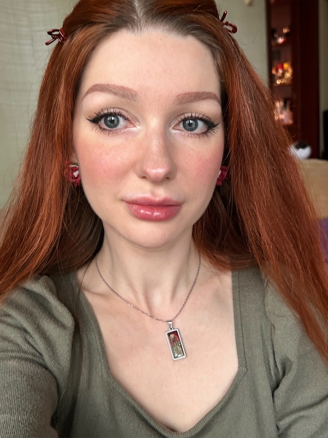 Текстура тинта очень легкая гелевая, не липкая. На губах ощущается комфортно, не сушит и не стягивает губы после высыхания сияющего слоя.