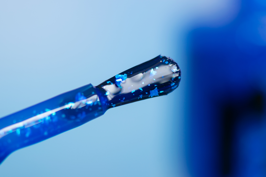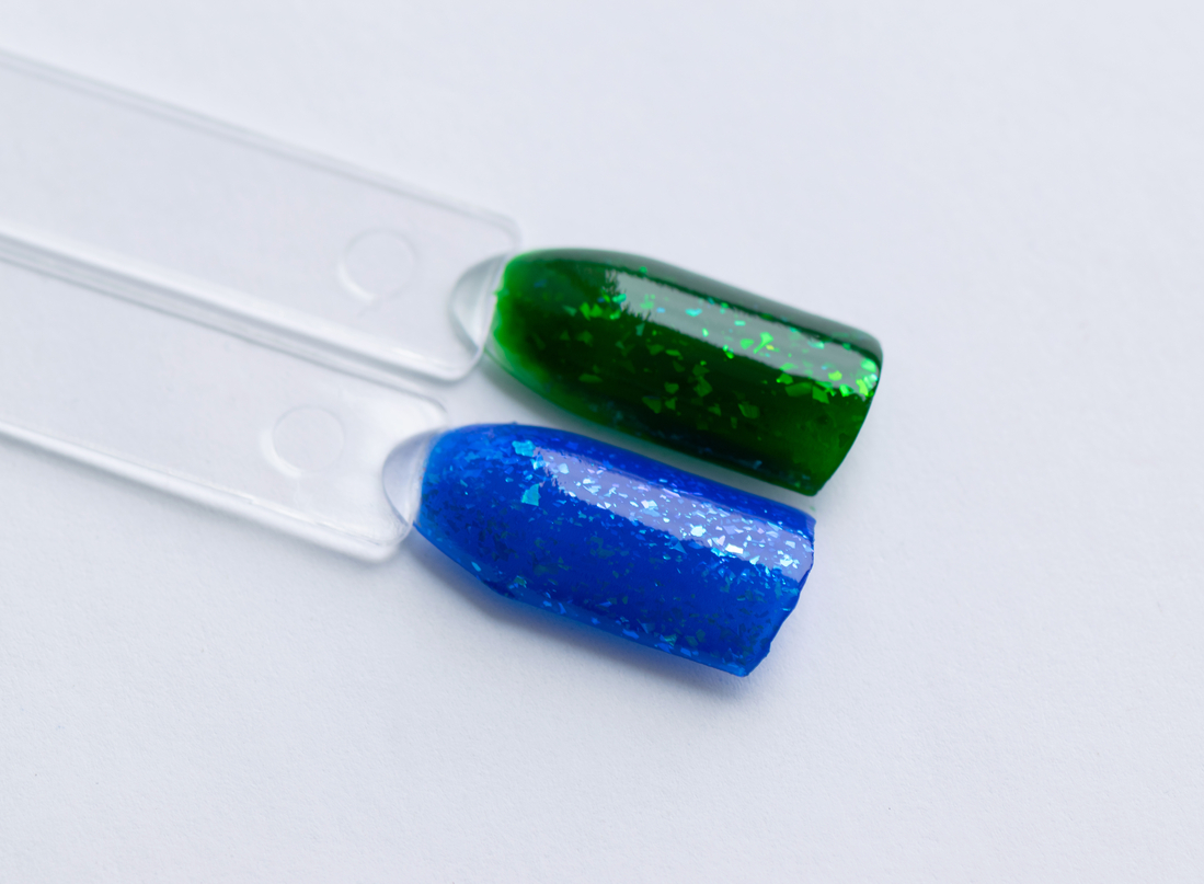 Цвет: глубокий ярко-синий с мультихромной слюдой (зеленый, голубой и синий переливы).