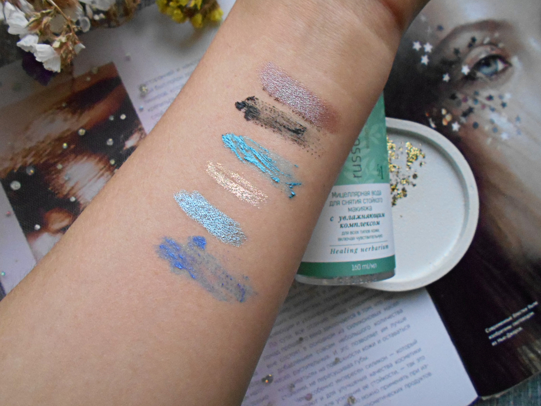 Мицеллярная вода легко справляется с тенями и тушью. Карандаши для глаз более въедливые в кожу, для их удаления приходится прилагать усилия.