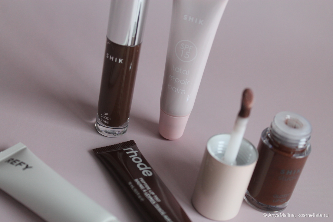 Хорошим и покладистым темно-каштановым блеском уже давно никого не удивишь, тогда покажу вам, что будет, если к нему добавить пигмент Тамми, да, на губы. И если вдруг вы не захотели/не смогли прихватить хайповый Rhode Peptide Lip Tint Espresso, то вполне можно обойтись Refy Tinted Lip Gloss Sepia, и по оттенку где-то около, и по увлажнению результат очень похожий.