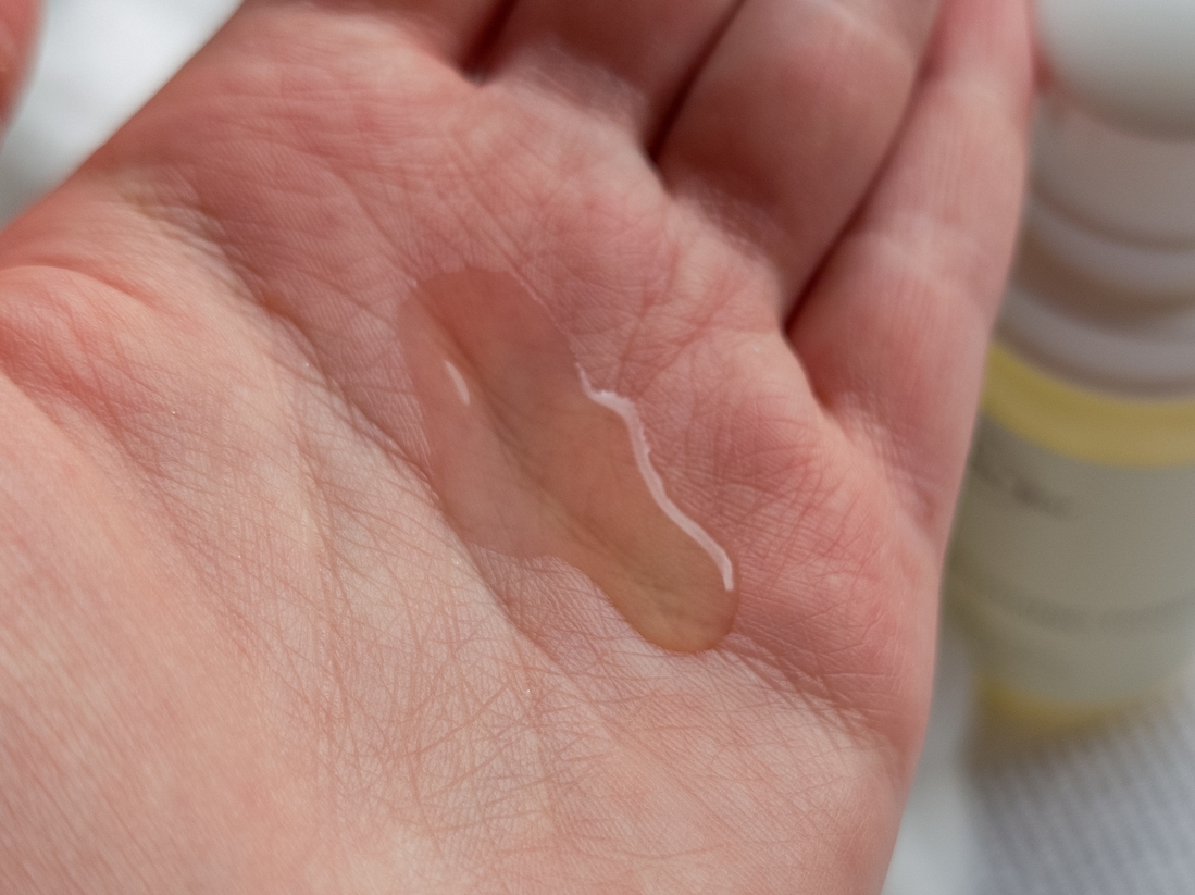 По текстуре это классический, слегка гелеобразный тонер с желтоватым оттенком. Жиденький, хорошо скользит по коже, как будто бы охлаждает её и пахнет, вероятно, гамамелисом.