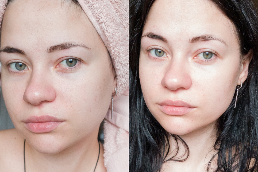 Первые несколько применений сыворотка прокалывала кожу, ощущение такое, будто она действительно разгоняла что-то в моём лице и бодрила его. Потом я то ли перестала обращать на это внимание, либо коже адаптировалась к этому покалыванию. Кожу она увлажняет, ну а как борется с отёками можете посмотреть на коллаже ниже. Слева до, справа после. Выгляжу на снимках я ужасно, я заболела, не спала, пила много воды, чтобы сбить озноб и, соответственно, отекла. Не обращайте внимание на полотенце, оно наоборот подтягивает лицо наверх.