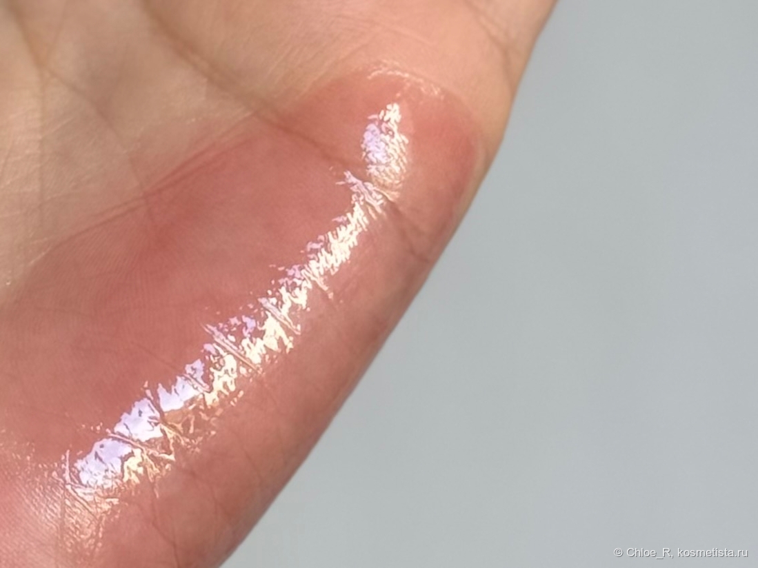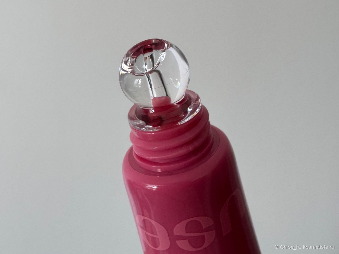 Сам блеск имеет очень необычную текстуру — больше всего это похоже на ягодный джем или варенье. Непривычно густой, но на губах легко распределяется и ровно аккуратно ложится.