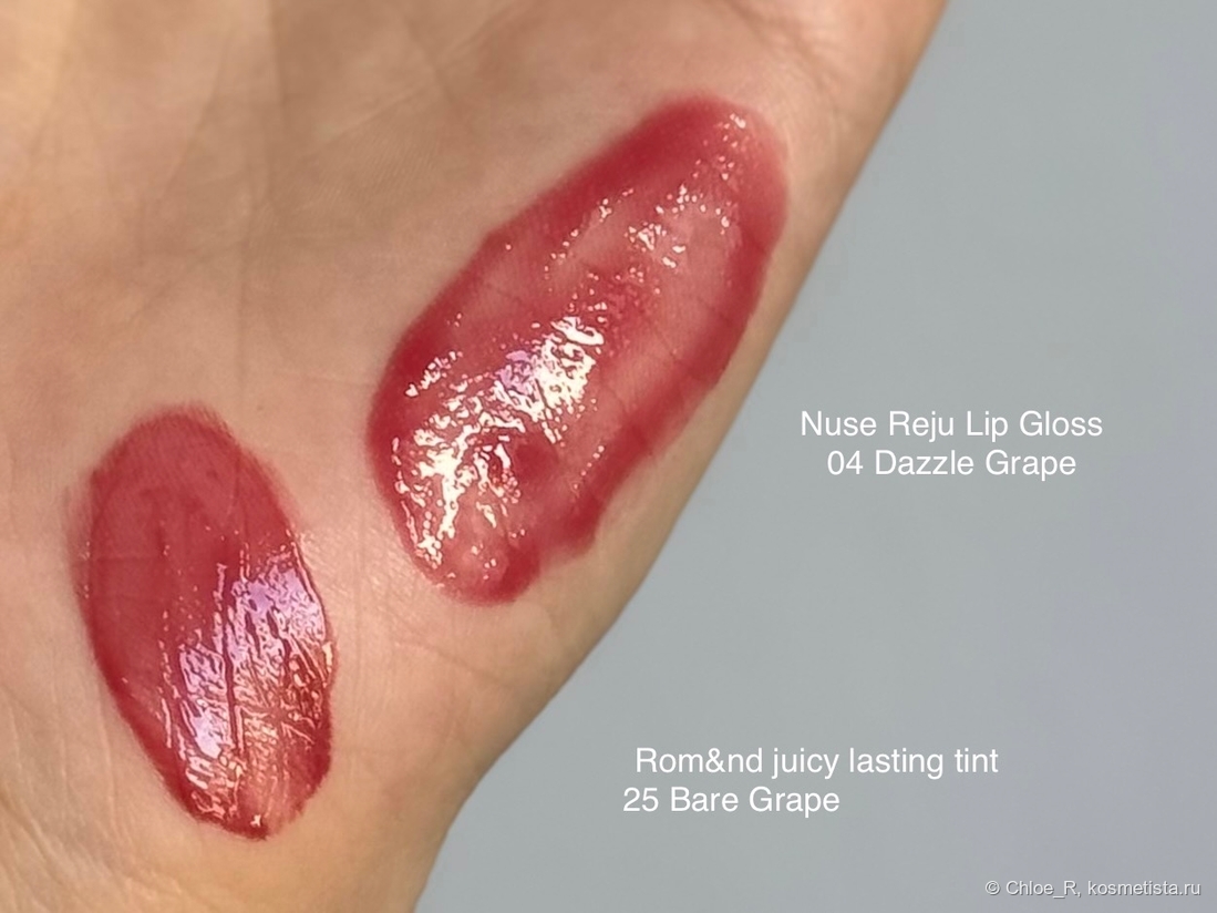 Всем привет! Когда я впервые увидела промо этих блесков от Nuse (дочерний бренд Rom&nd), то очень загорелась купить их. Но, благо, не все сразу, начать решила с, как мне показалось, холодного и симпатичного оттенка 04 Dazzle Grape. Далее были все стадии принятия от разочарования до любви))