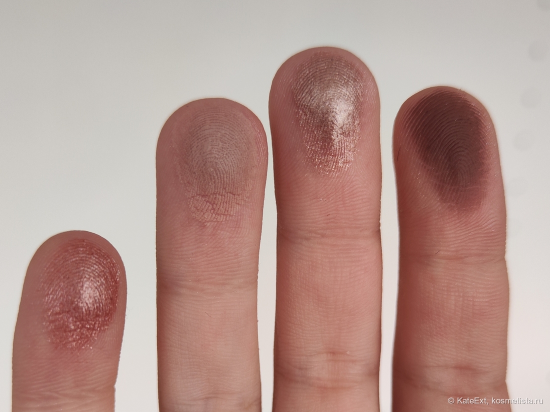 Гамма подобрана отлично: все оттенки сочетаются между собой. Серьезно, можно натыкать кистью в случайные рефилы и нанести их на случайные участки века и все равно получить хороший результат.