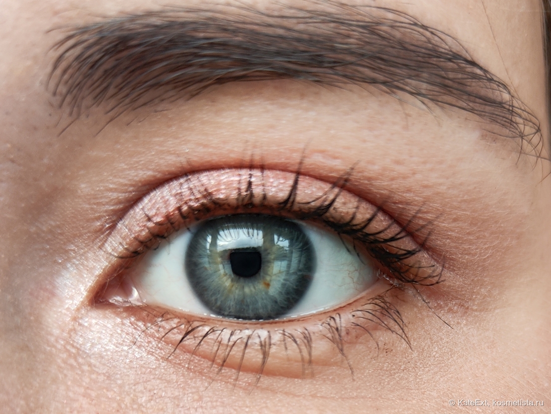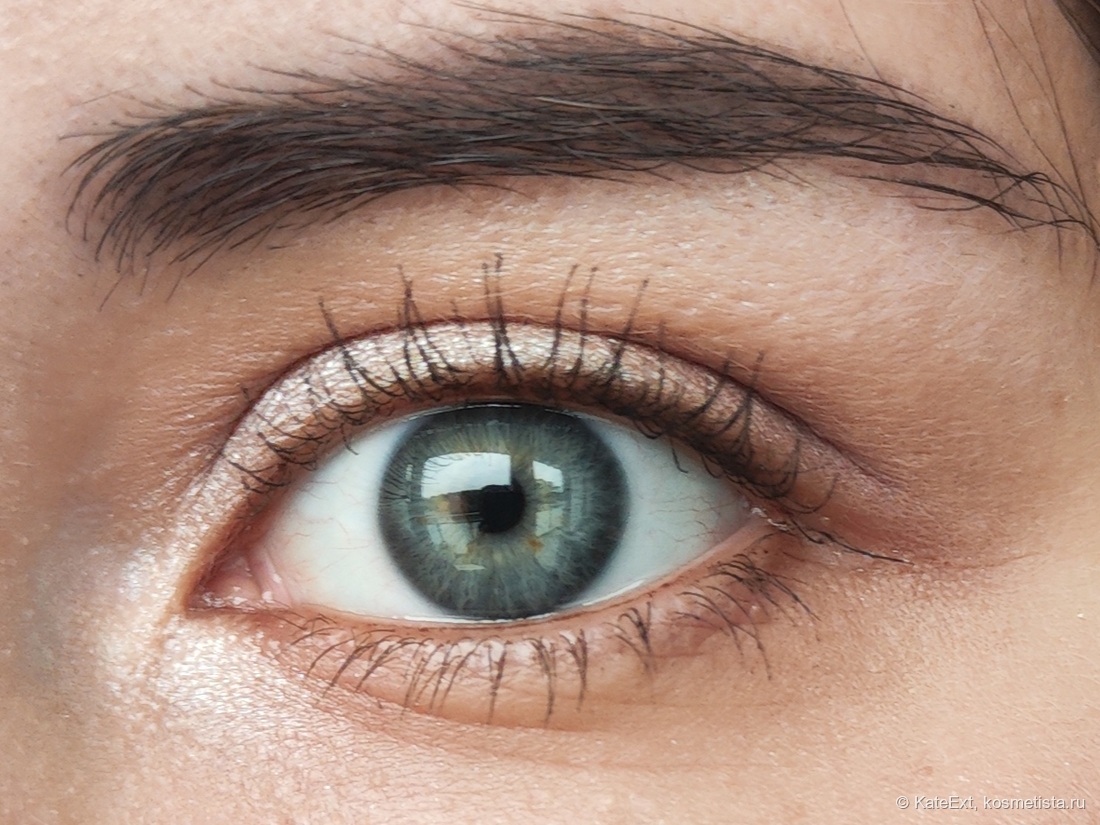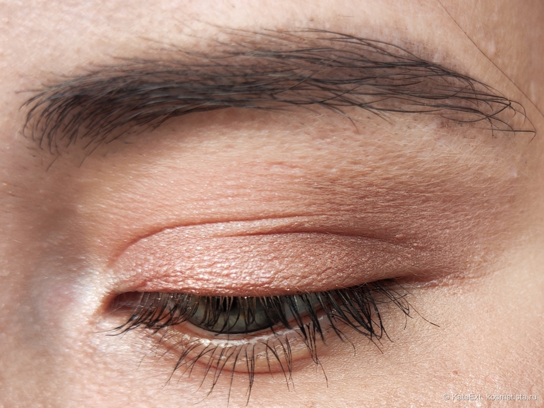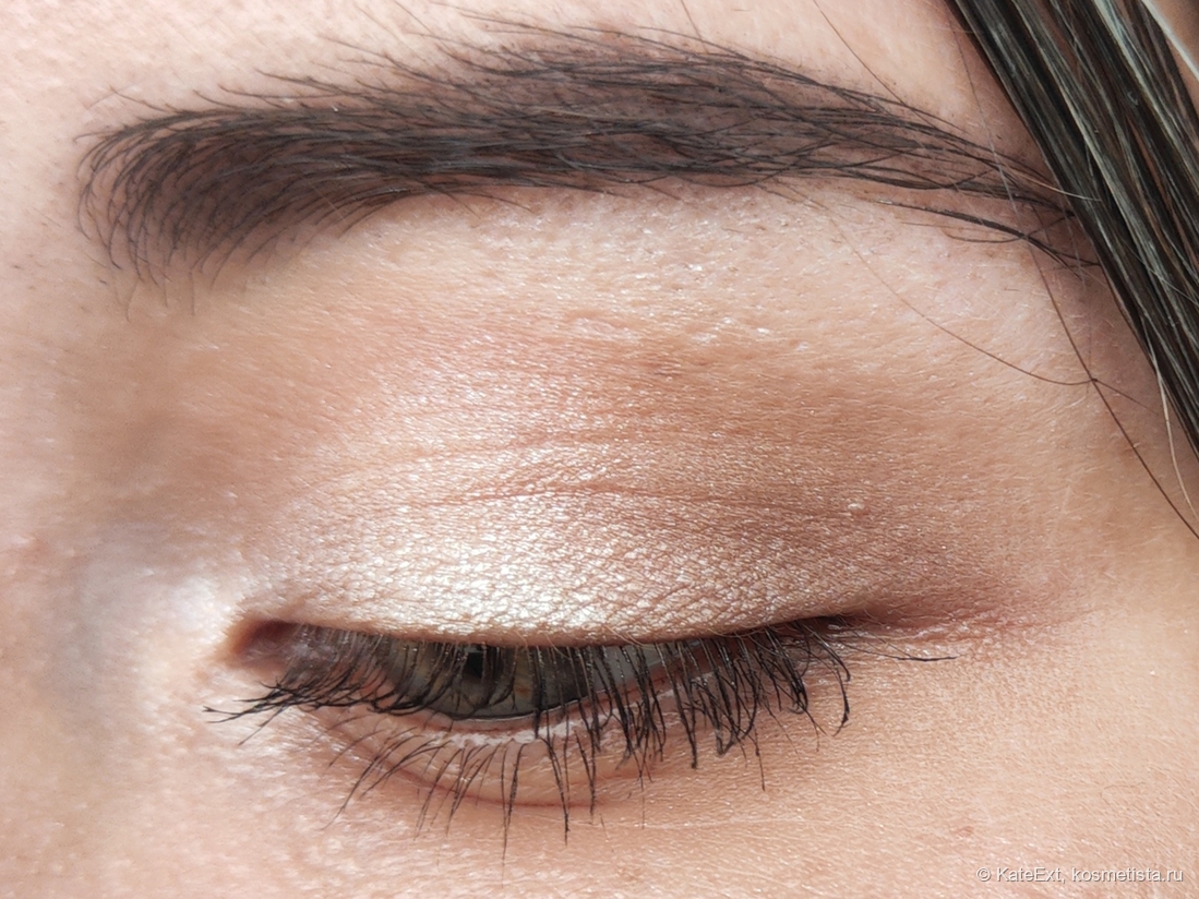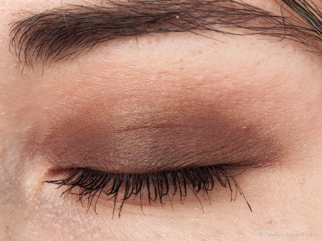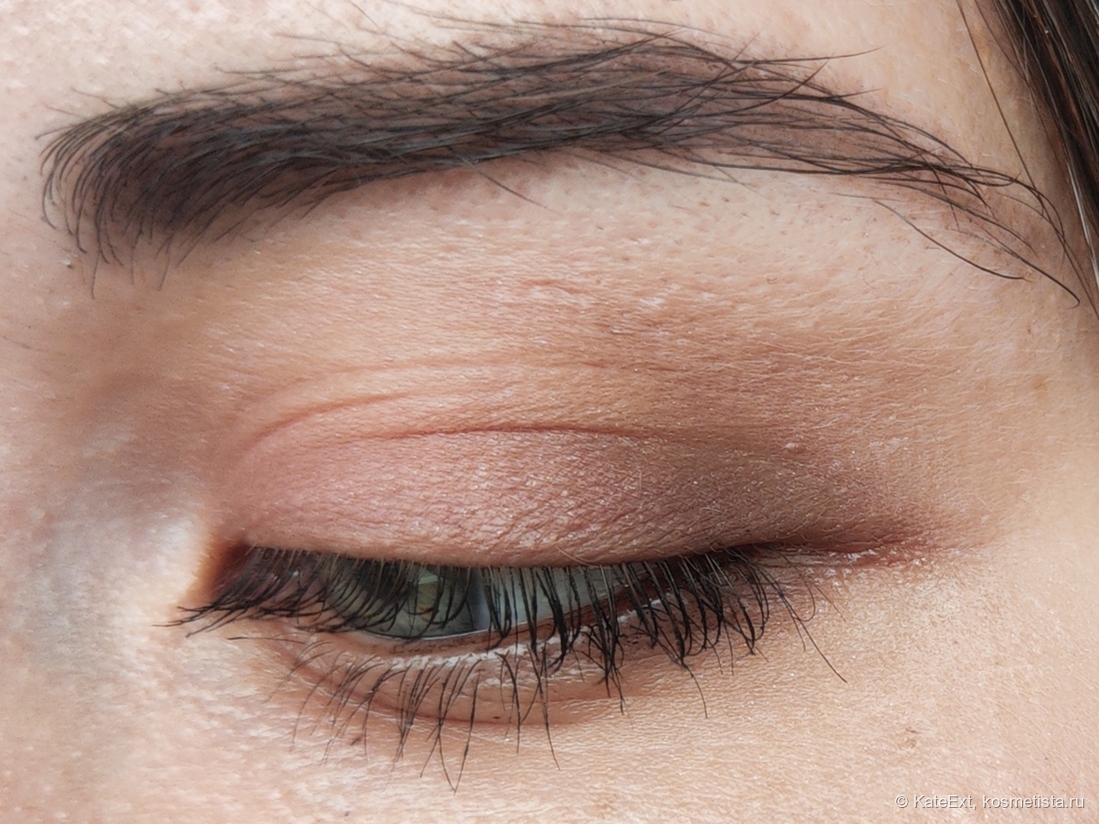 В складке — тауп, на подвижном веке самый темный оттенок. Видите, он чуть блестит на фото? Не верьте, в реальности оттенок абсолютно матовый.
