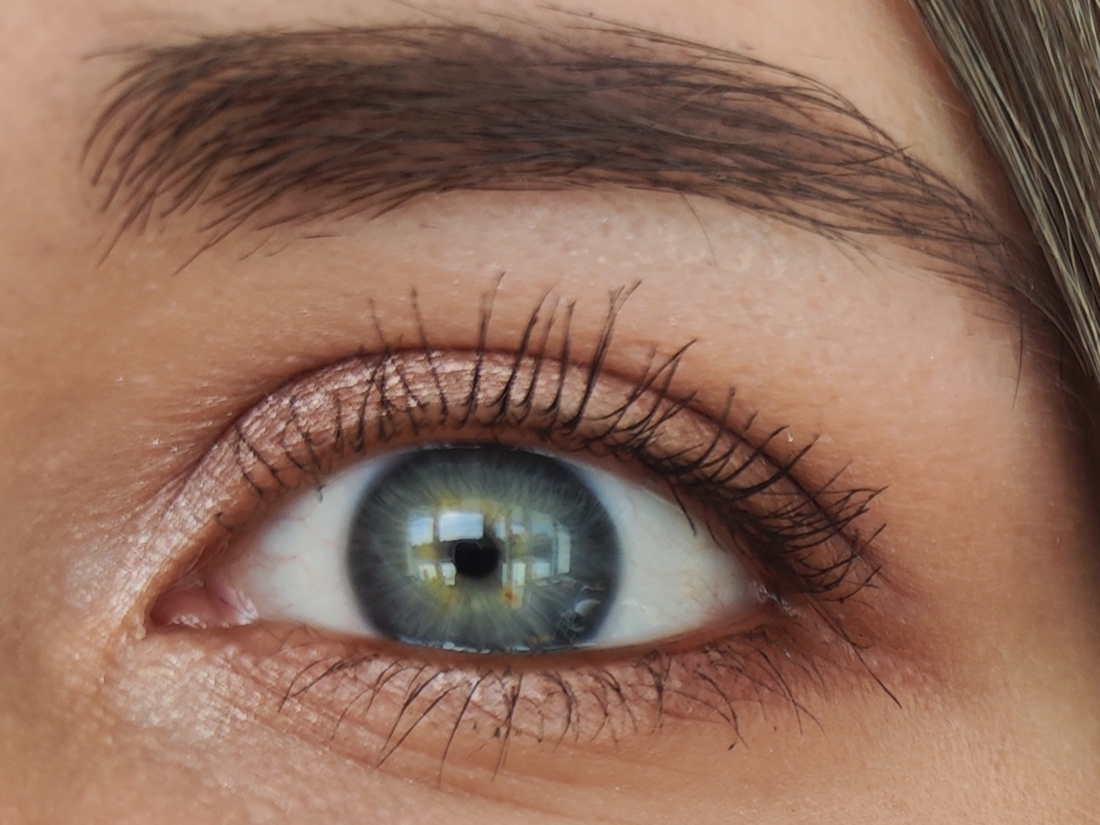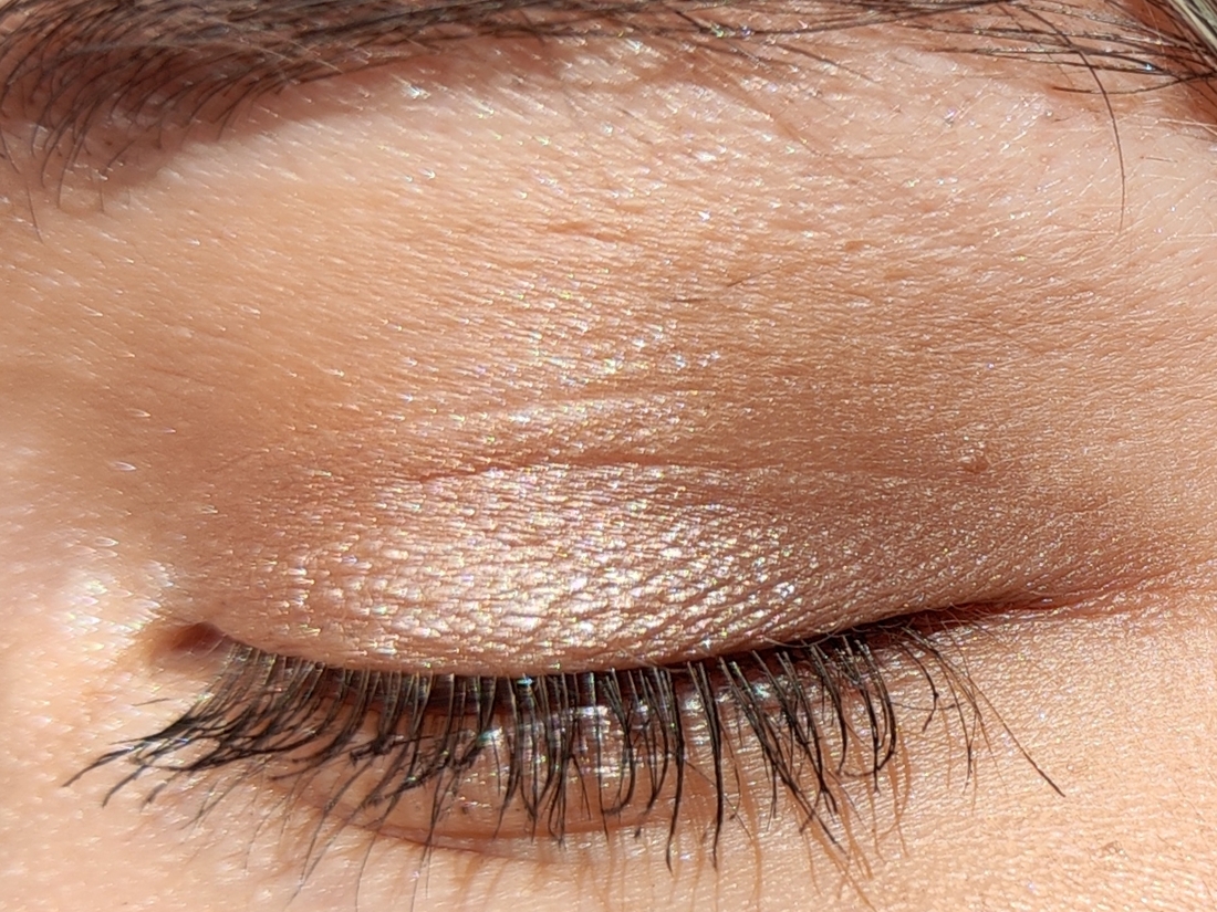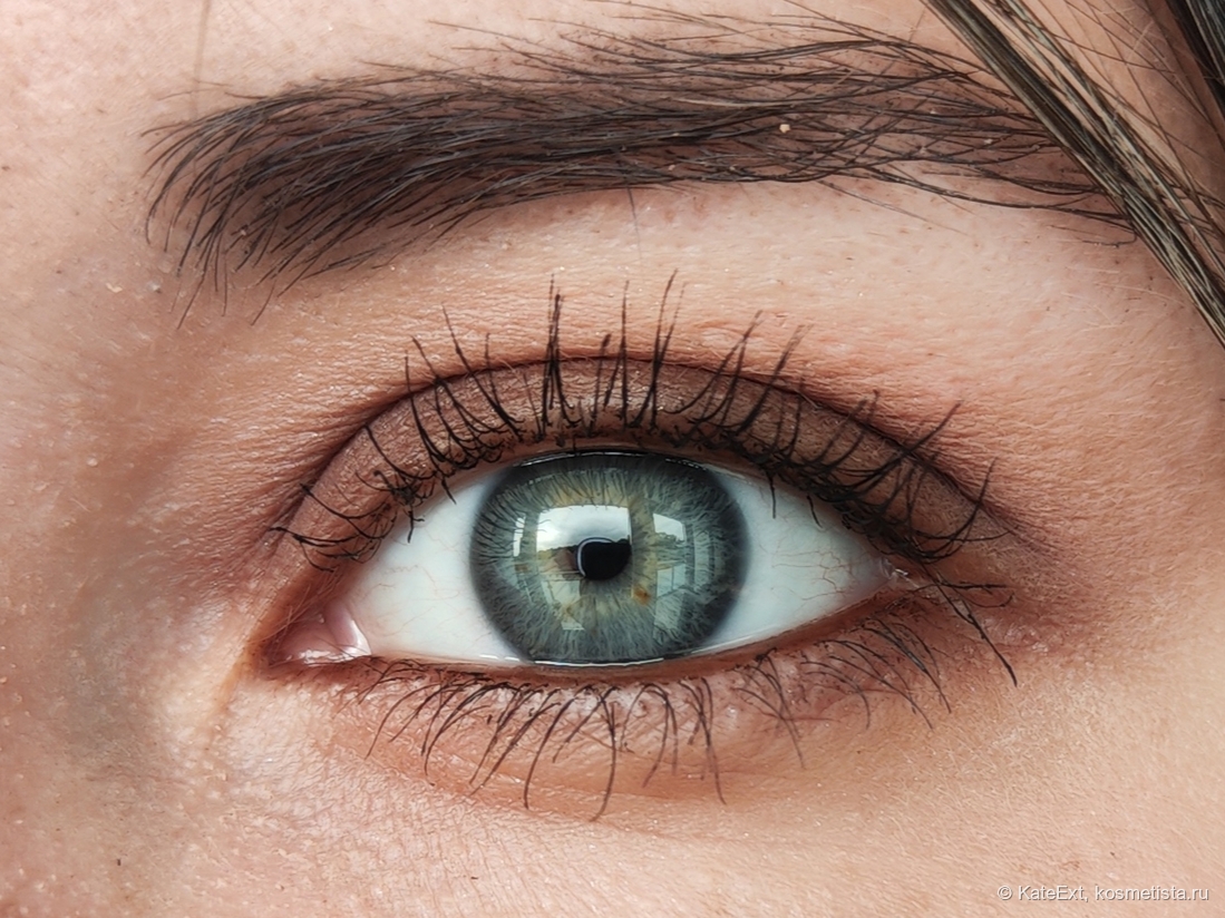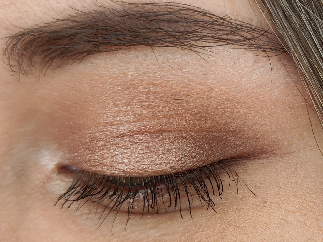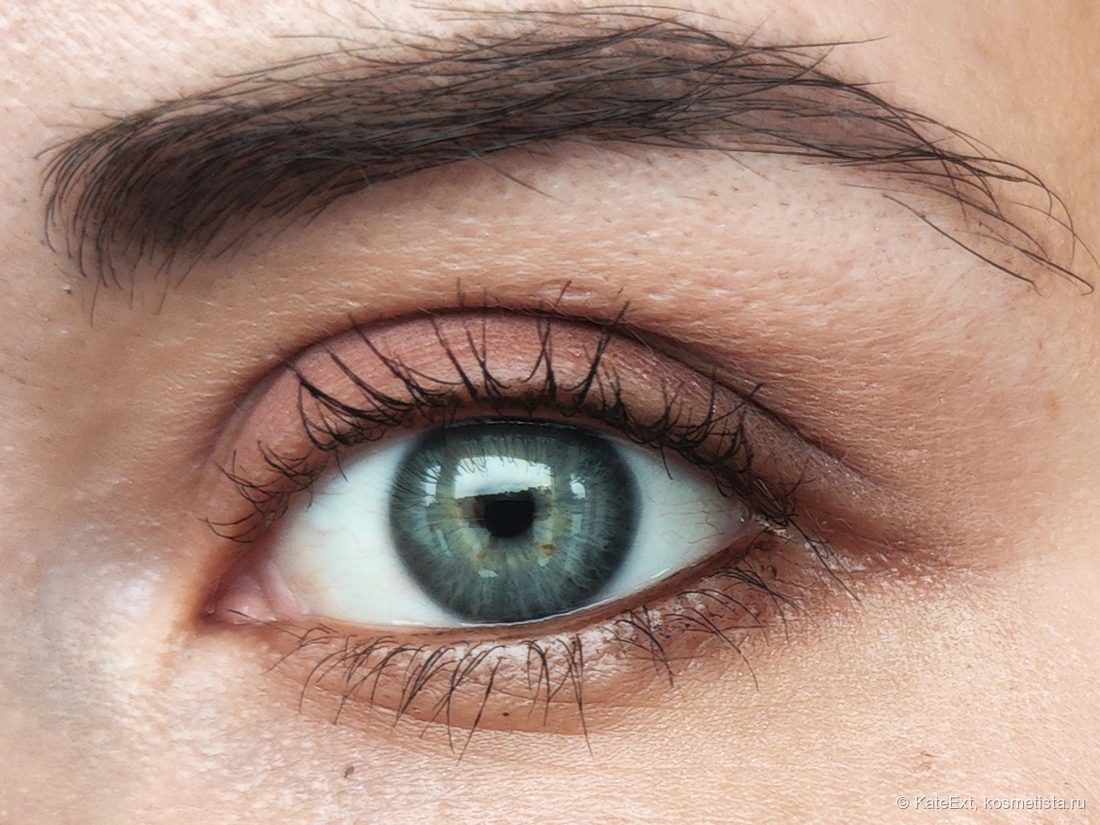 В складке — тауп, на подвижном веке самый темный оттенок. Видите, он чуть блестит на фото? Не верьте, в реальности оттенок абсолютно матовый.
