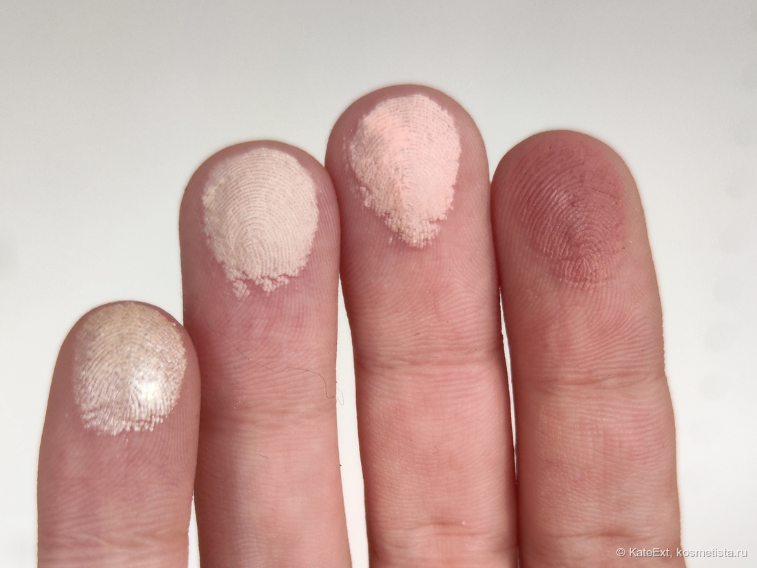 Фарфорово-розовый, пудровый. Матовый, теплый. Отлично показывает себя в тушевке и как основа совсем легкого дневного макияжа а-ля Натурель.