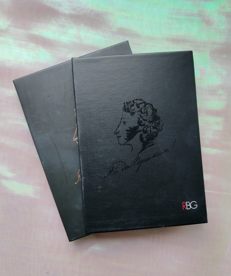 Палетка упакована в «конвертик» из плотного картона. Оформление конверта идентично самой палетке: на чёрном фоне мы видим Пушкина.