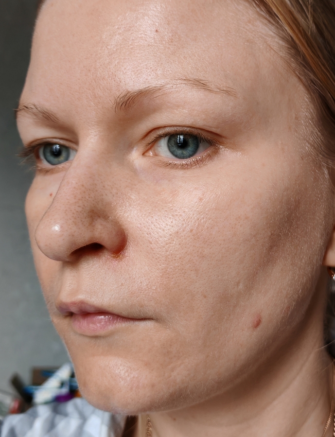 При первом нанесении крем мне показался светловат, но он быстро подстроился под оттенок кожи.