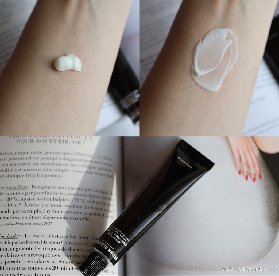 Белоснежный крем впитывается около минуты. Минимально увлажняет, не подсушивает. Однажды писала на него обзор, ароматизирует и минимально воздействует.