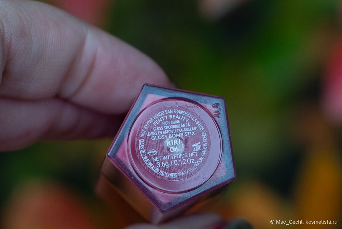 После шиммерных стиков я решила, что мне нужны глянцевые стики и первым приобрела Fenty Beauty Gloss Bomb High-Shine Stix #Riri.
