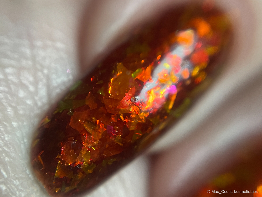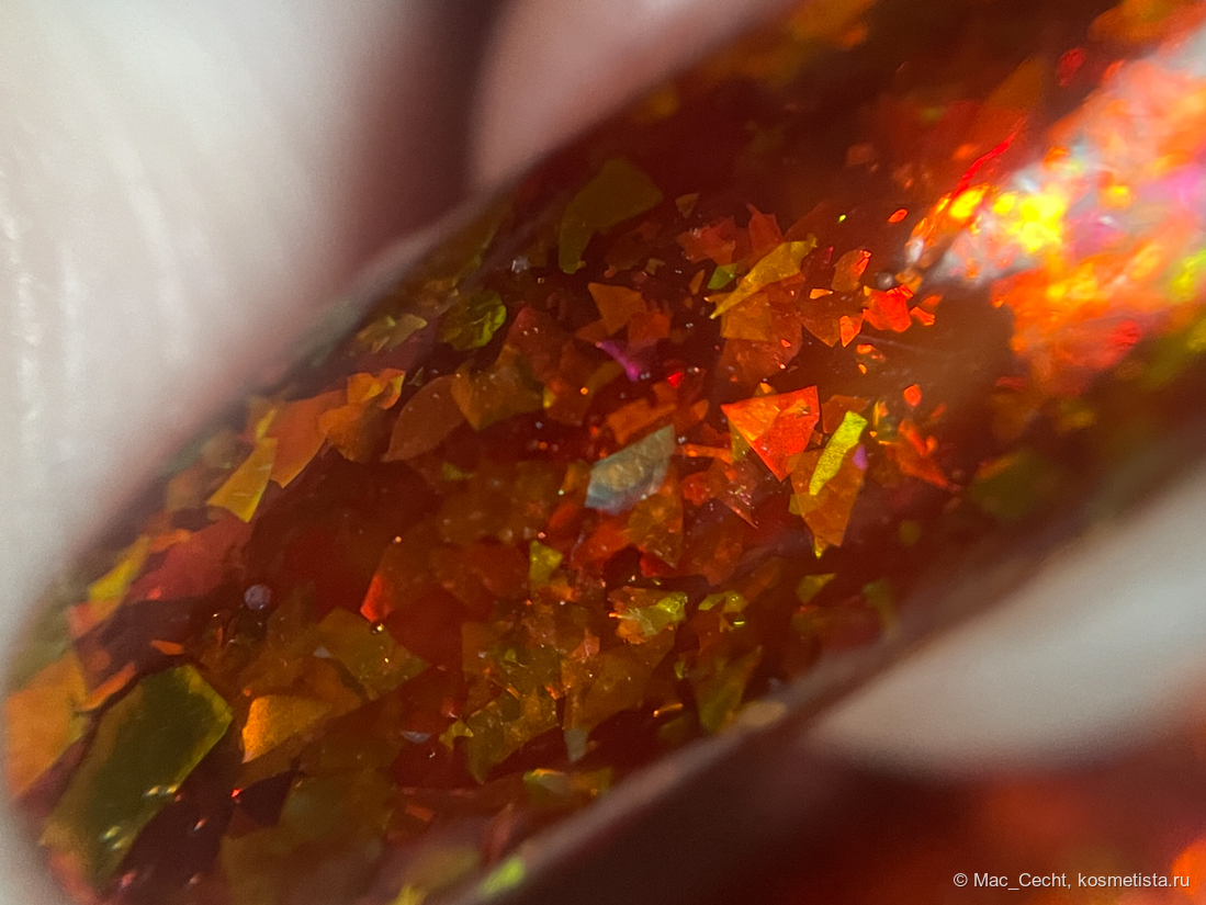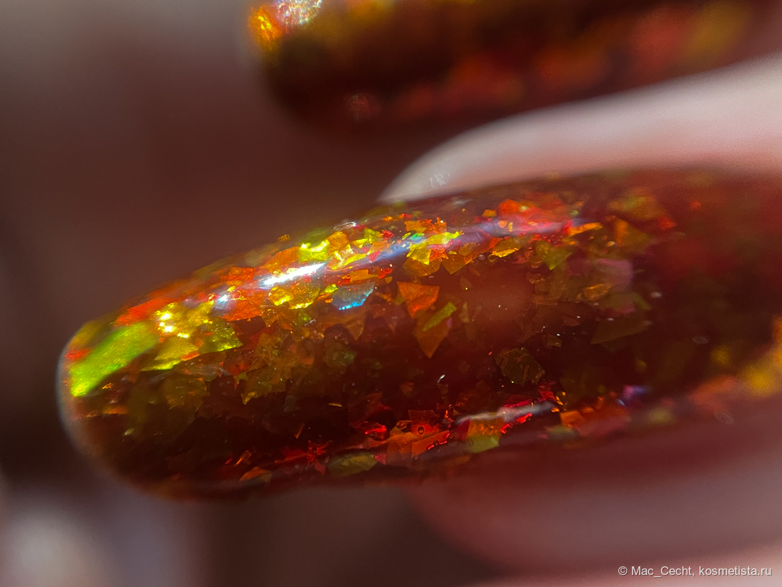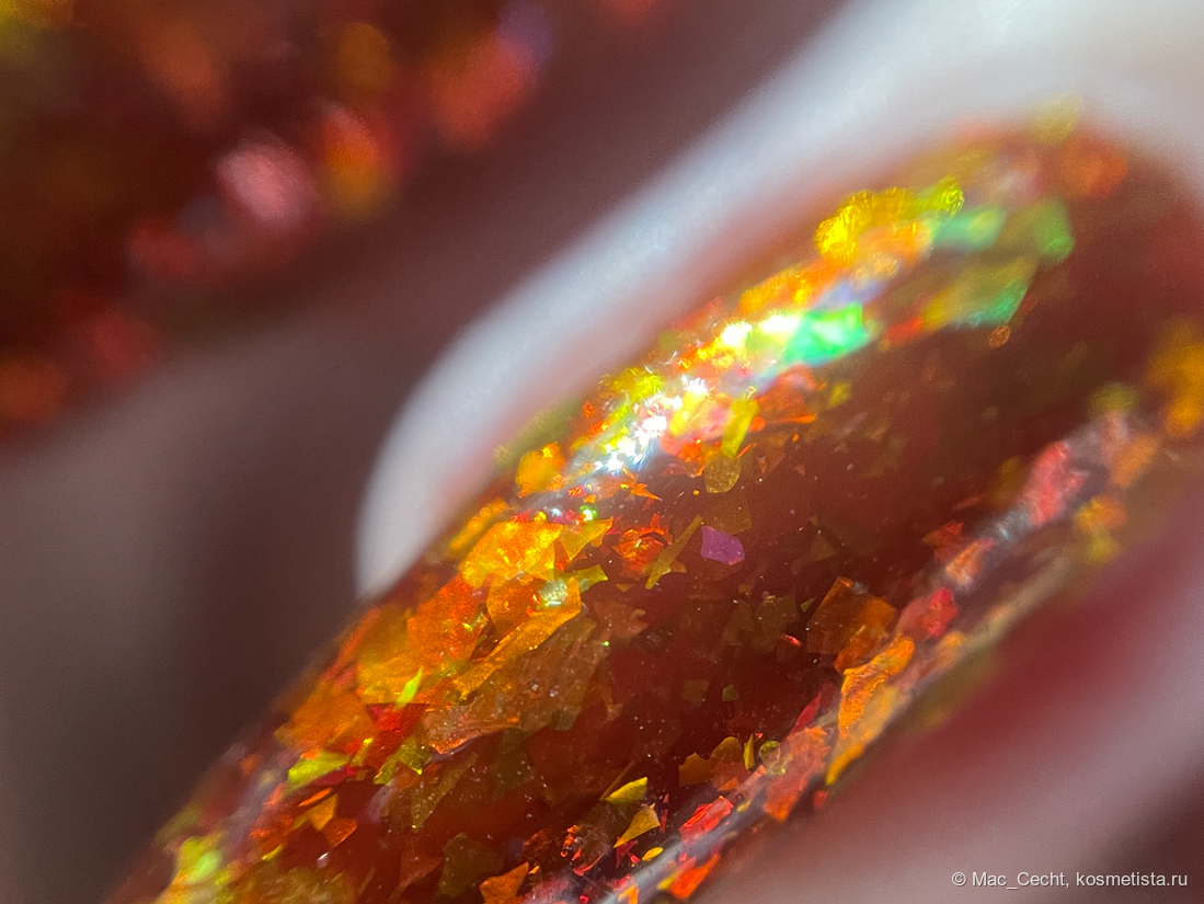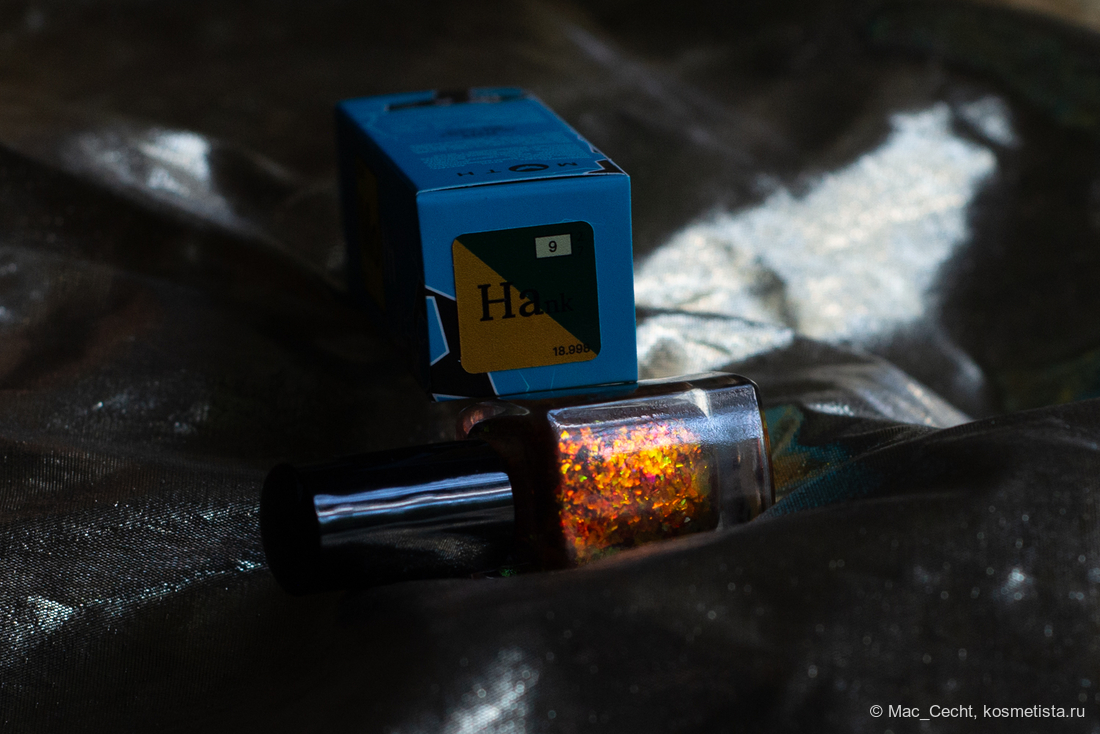 А теперь перейдем к самому цвету. Hank — это чистое безумие! Мультихромная рыже-красная слюда в базе цвета йода. Это невероятно красиво.