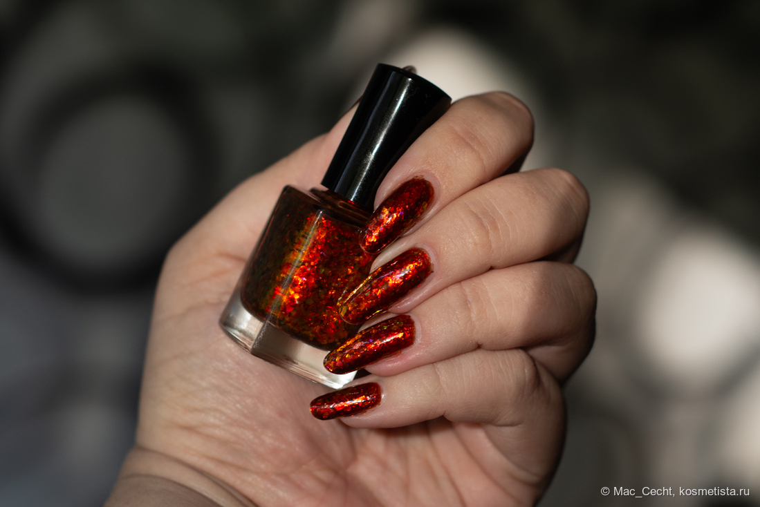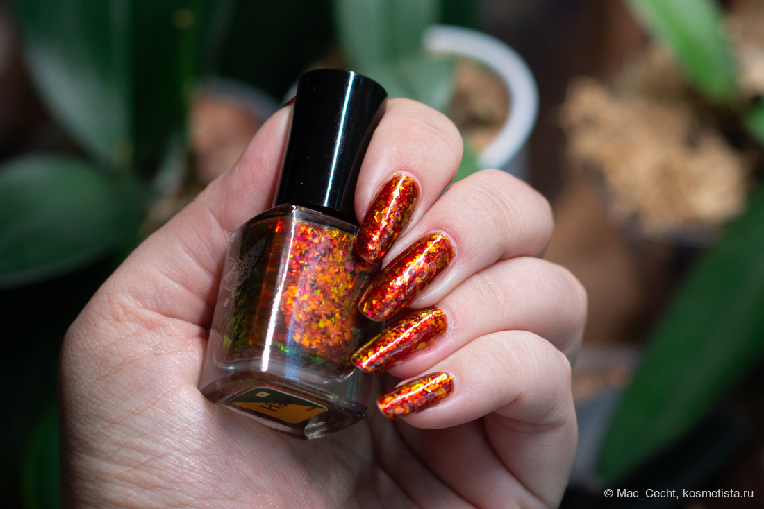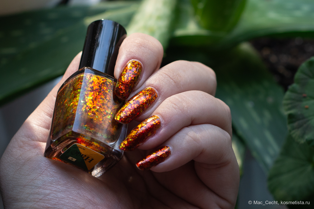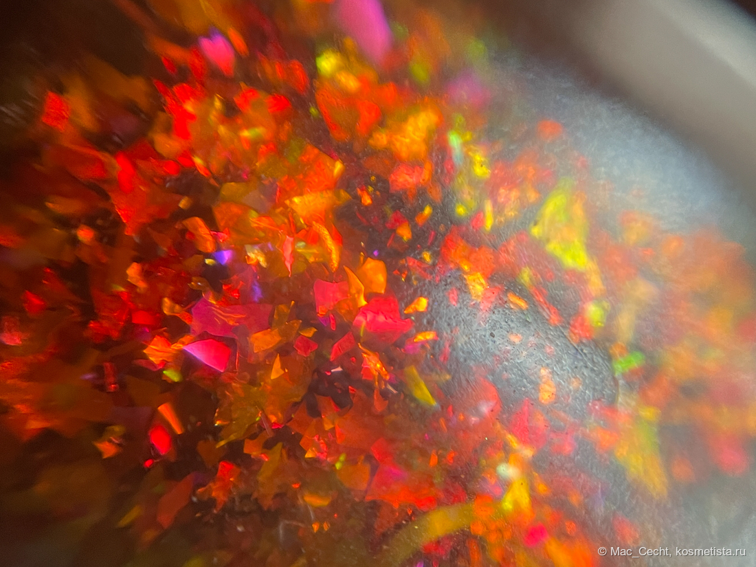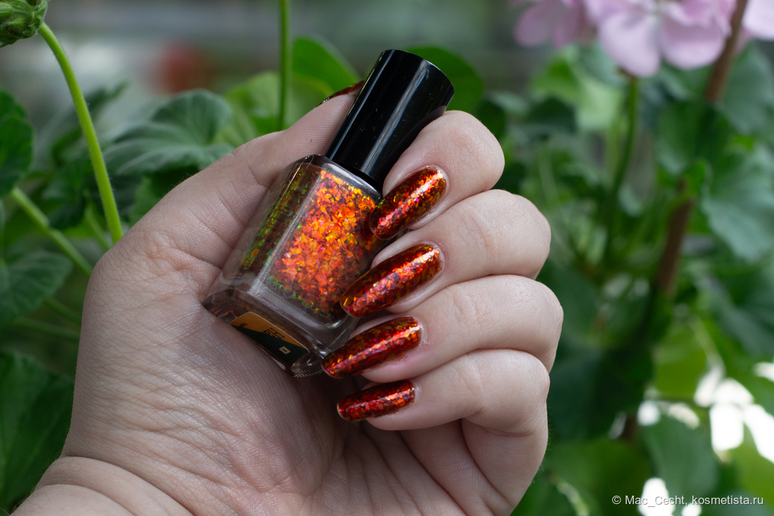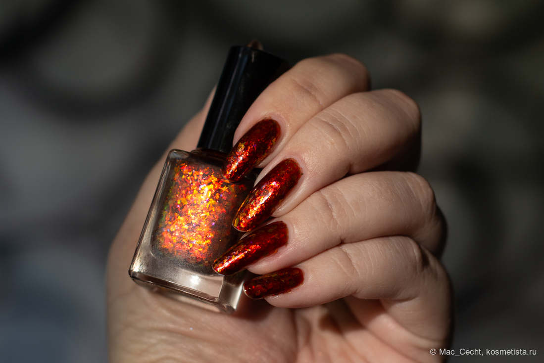 А теперь перейдем к самому цвету. Hank — это чистое безумие! Мультихромная рыже-красная слюда в базе цвета йода. Это невероятно красиво.