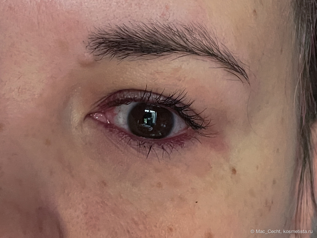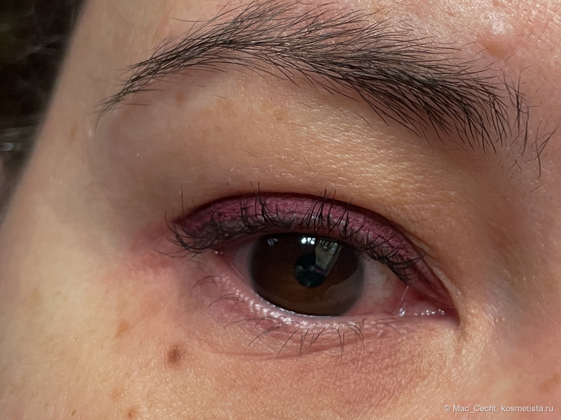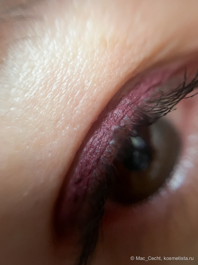 Вообще, я хотела его не для стрелок, а для нижней слизистой. Стрелки я почти не рисую. На слизистой, конечно, может дать эффект заплаканных глаз, но у меня свои сейчас такие — очень яркие красные капилляры и не самый яркий белок в принципе.