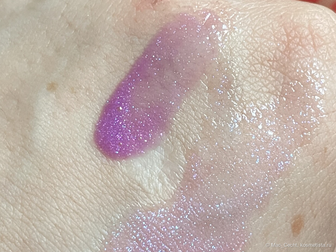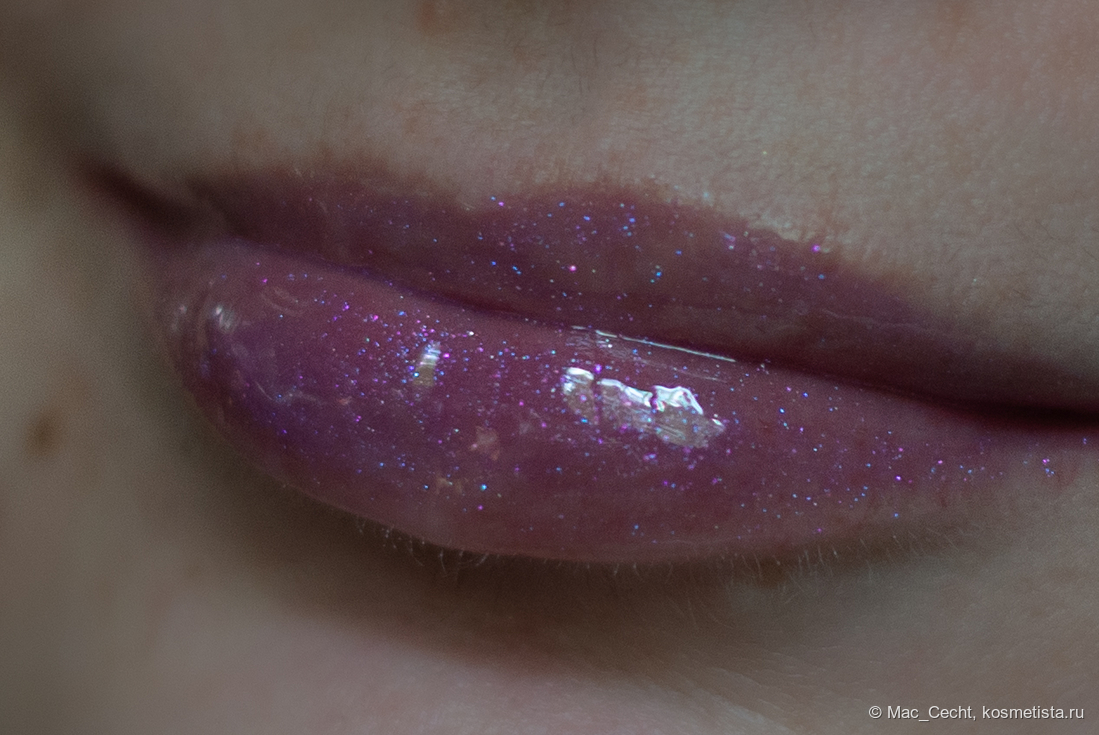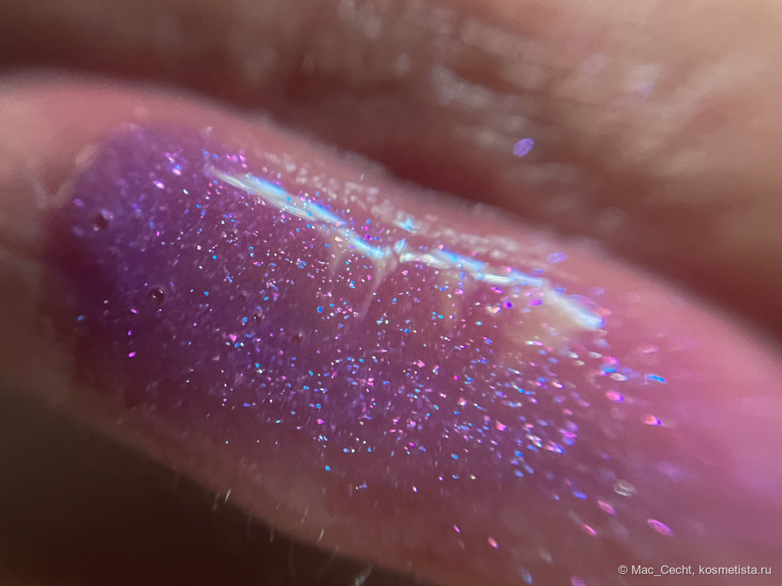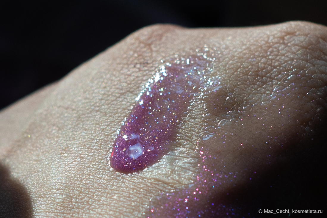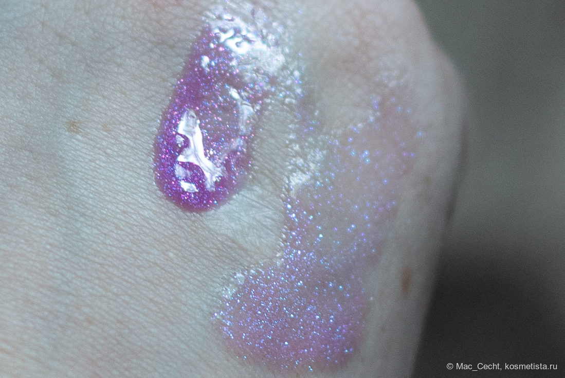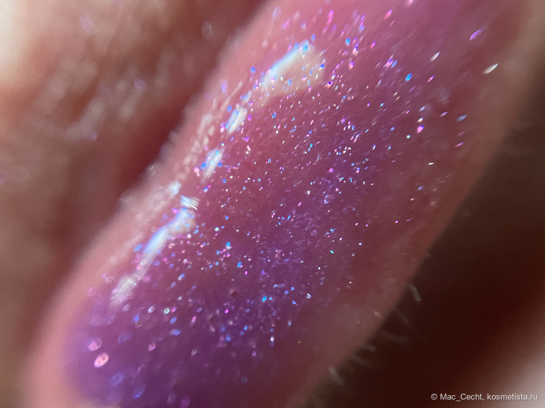 По поводу цвета марка, как всегда, лаконична — «shimmering lavender». Я бы сказала, что это розово-фиолетовый блеск с мелкой слюдой, бликующей розовым, фиолетовым и даже золотистым.