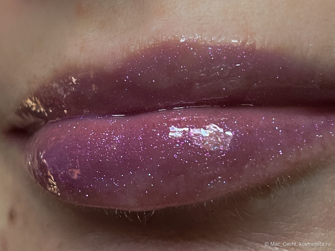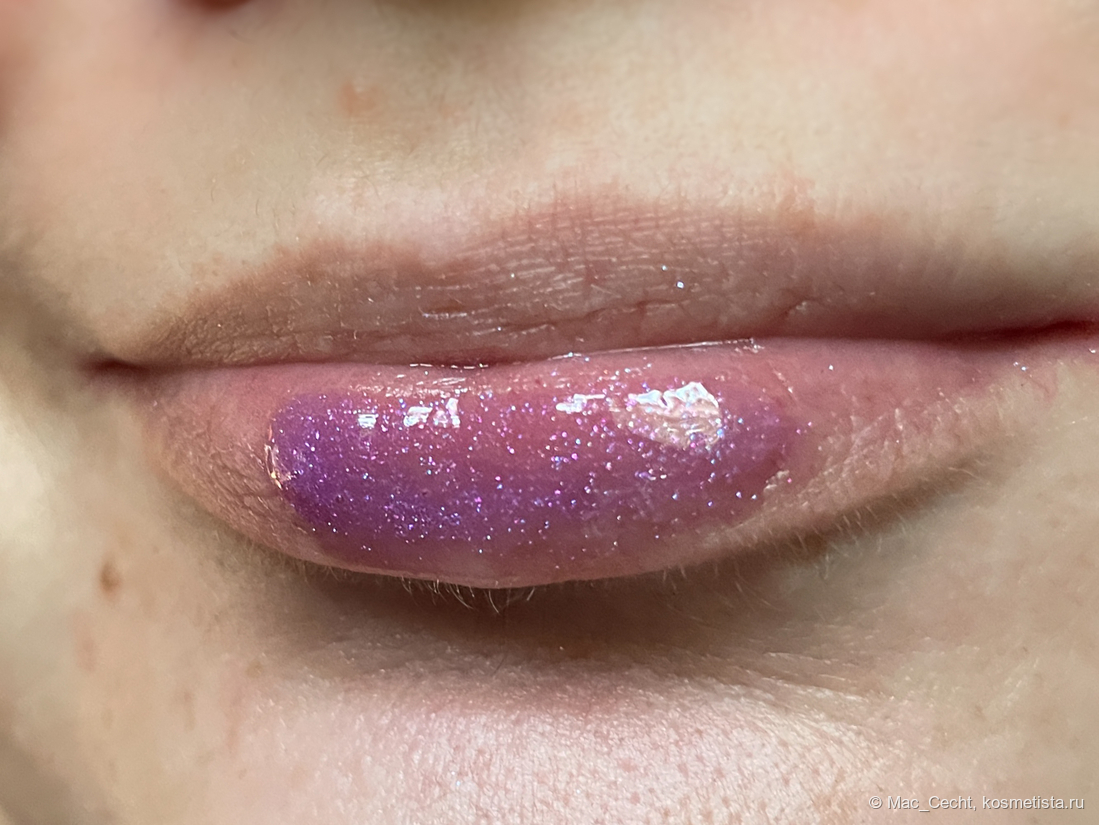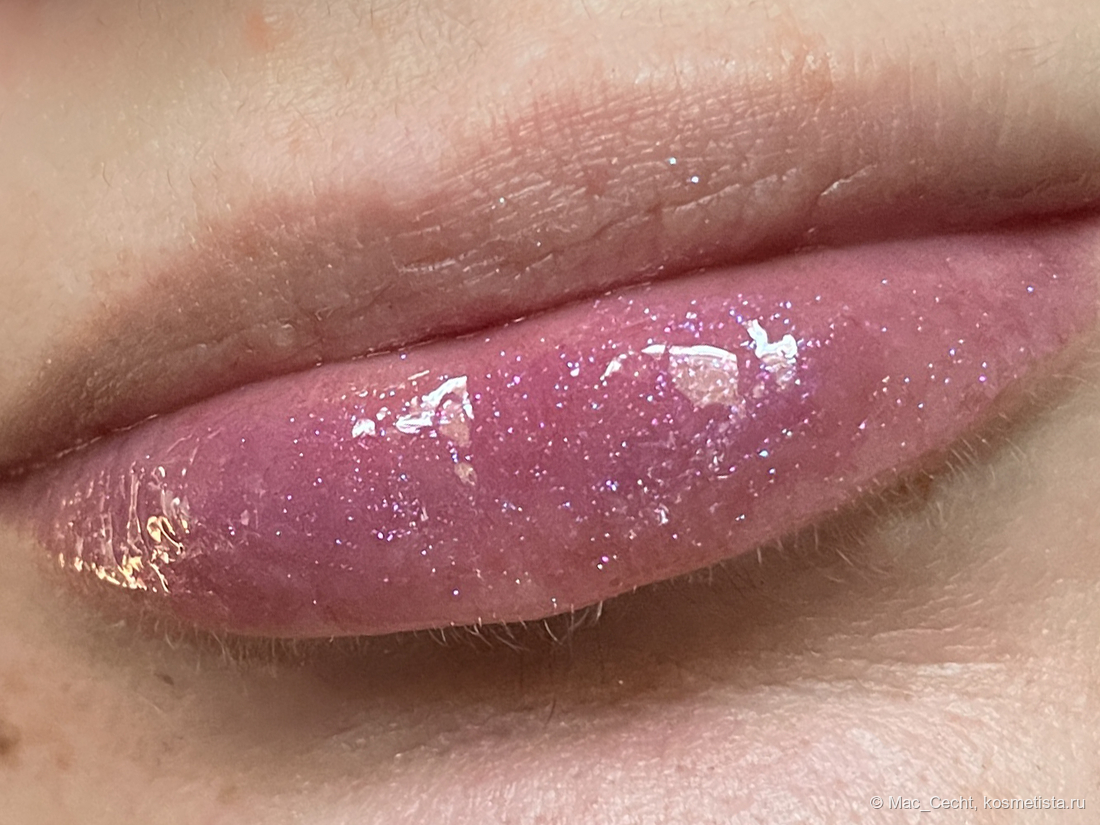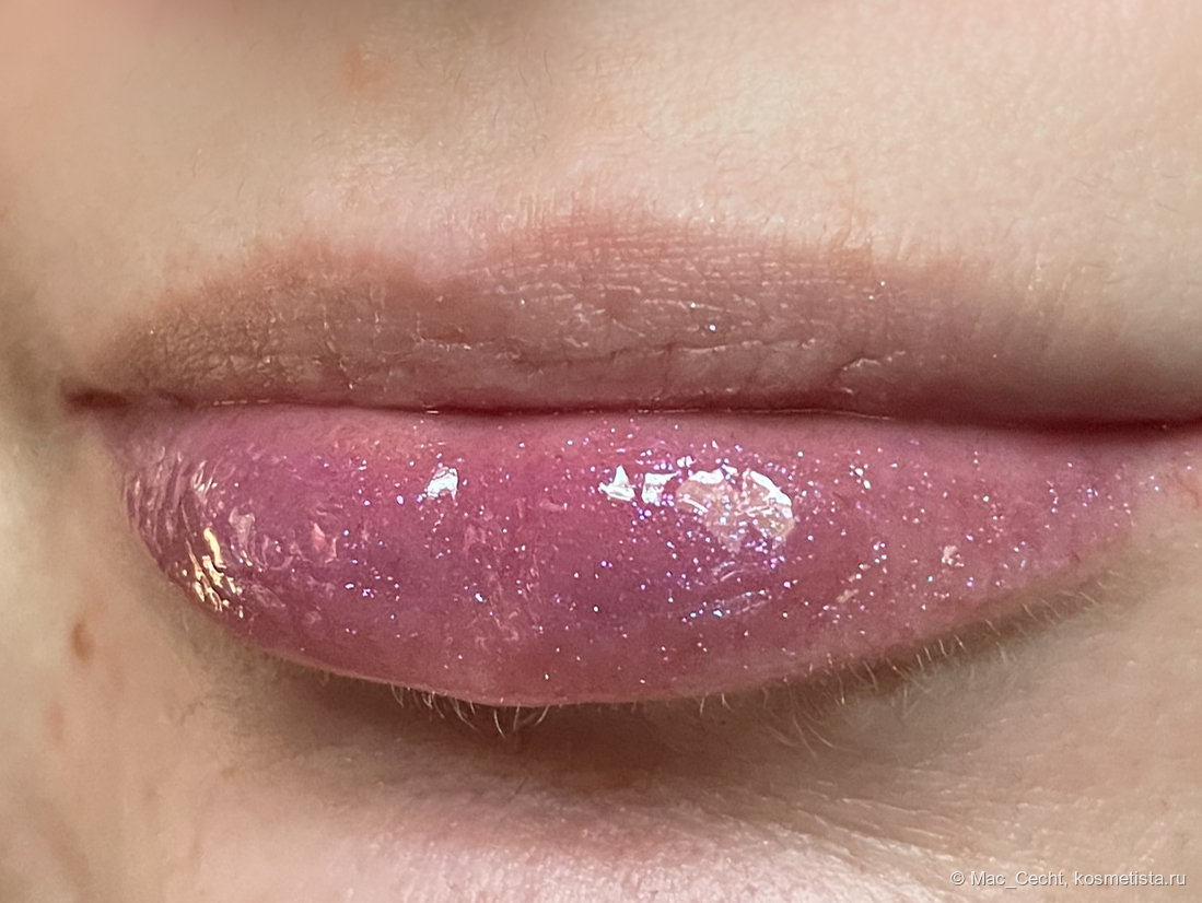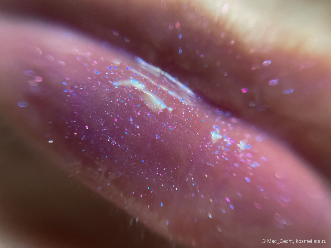 По поводу цвета марка, как всегда, лаконична — «shimmering lavender». Я бы сказала, что это розово-фиолетовый блеск с мелкой слюдой, бликующей розовым, фиолетовым и даже золотистым.
