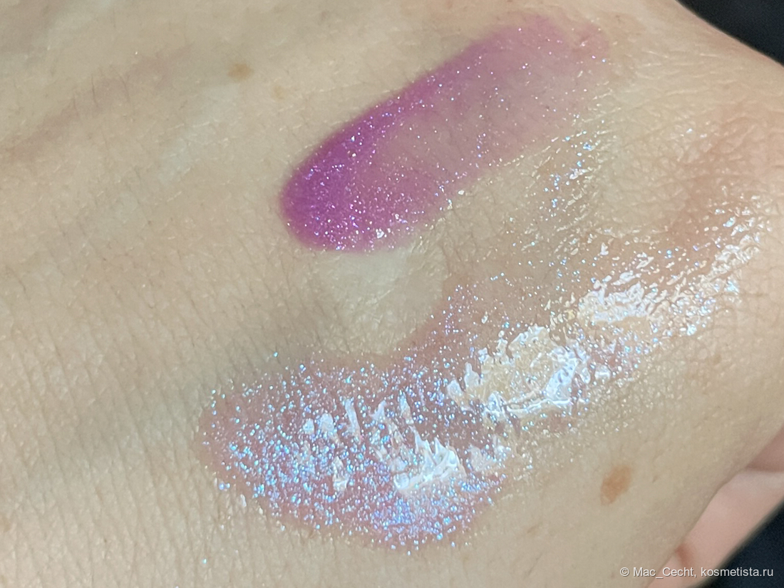 - В случае с этим оттенком — еще и дает достаточно активный цвет, многие блески полупрозрачные.