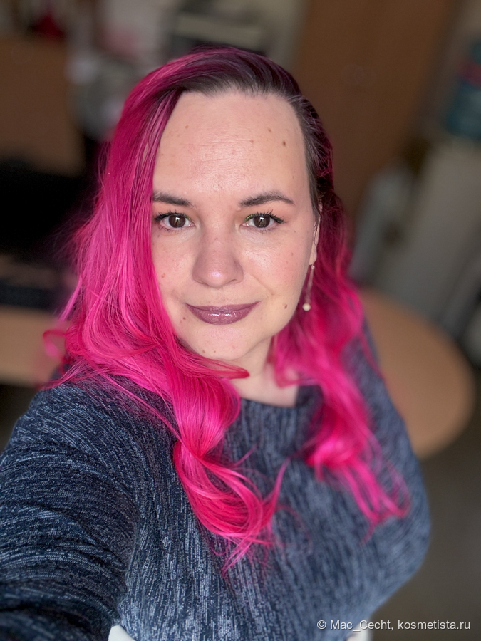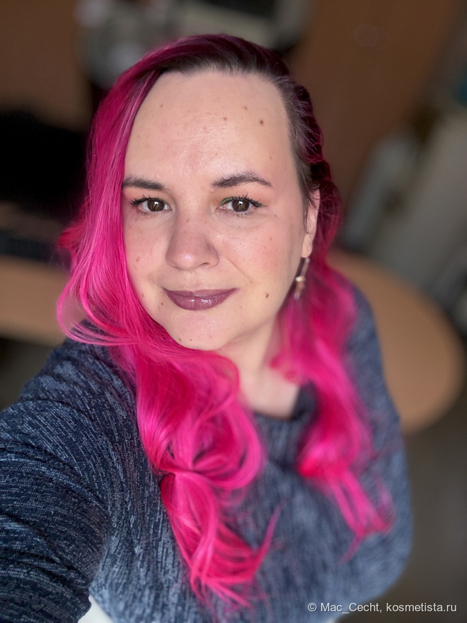 - Приятная текстура. Люблю, когда помады наносятся легко и просто, не приходится тянуть губы. Здесь помада наносится тонким слоем, она полубальзамная, подтаивает от температуры губ. Не люблю матовые, и сатиновые не могу назвать беспроблемными.