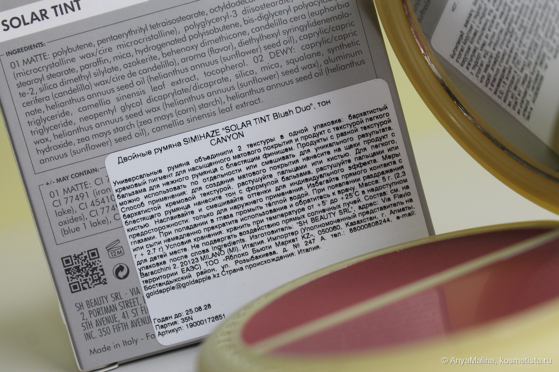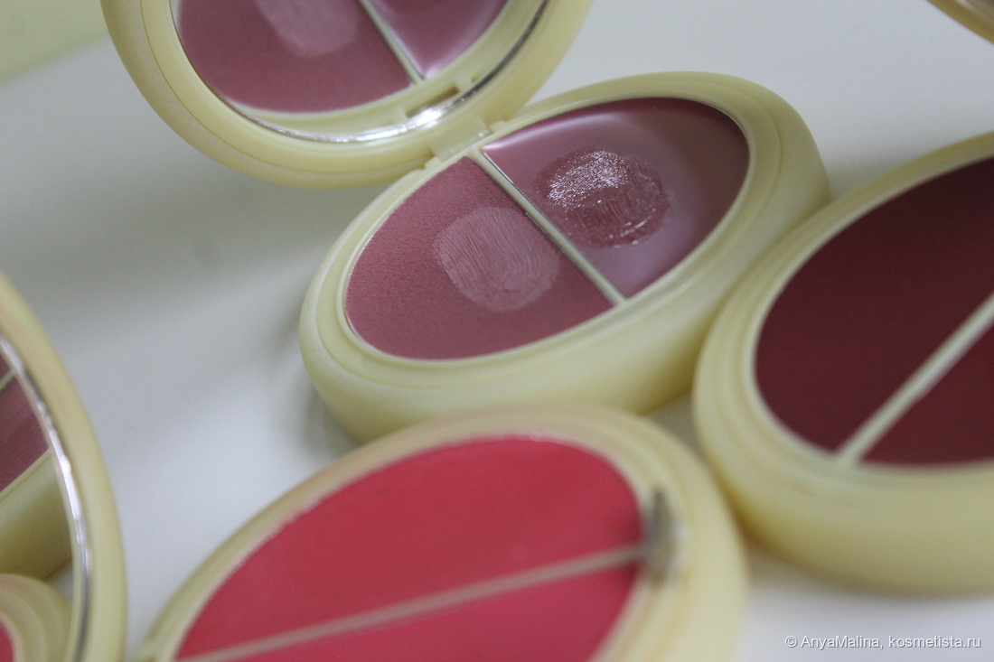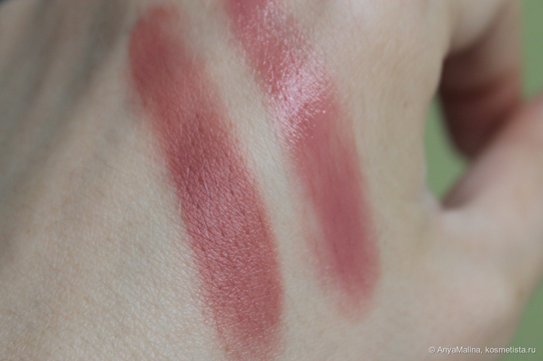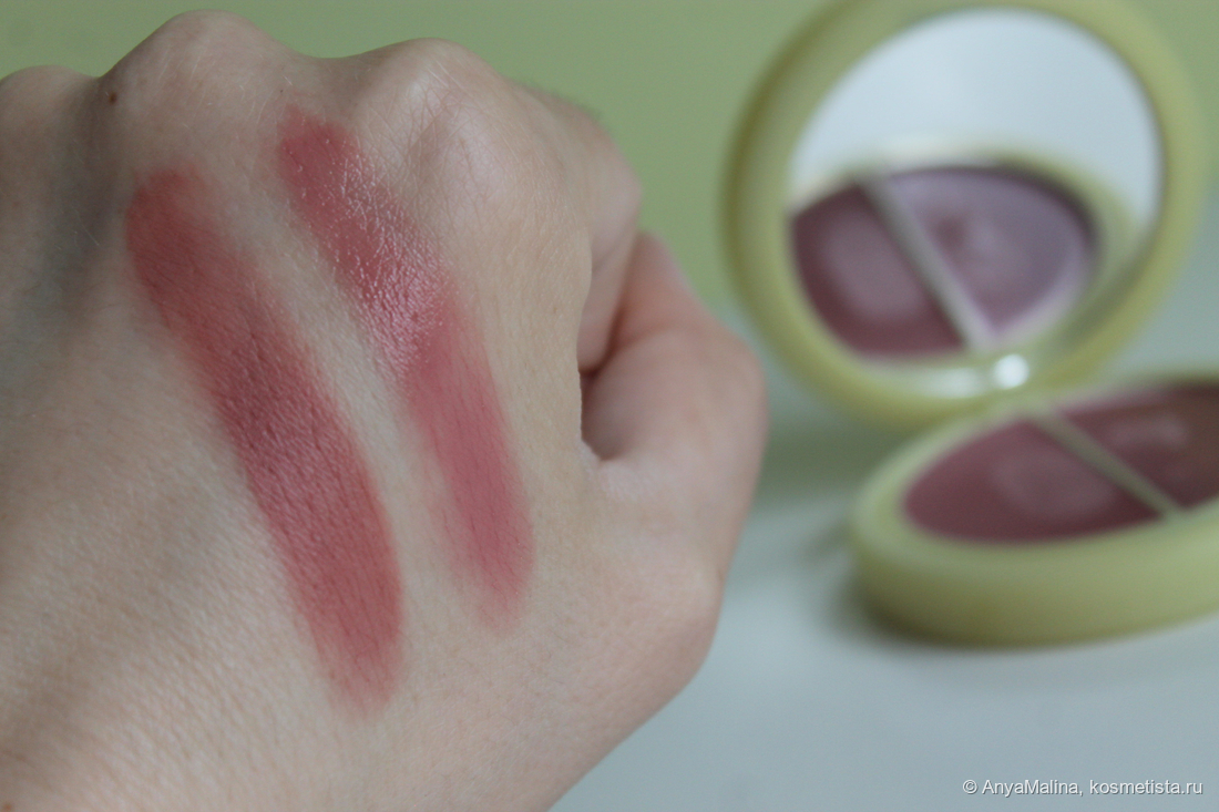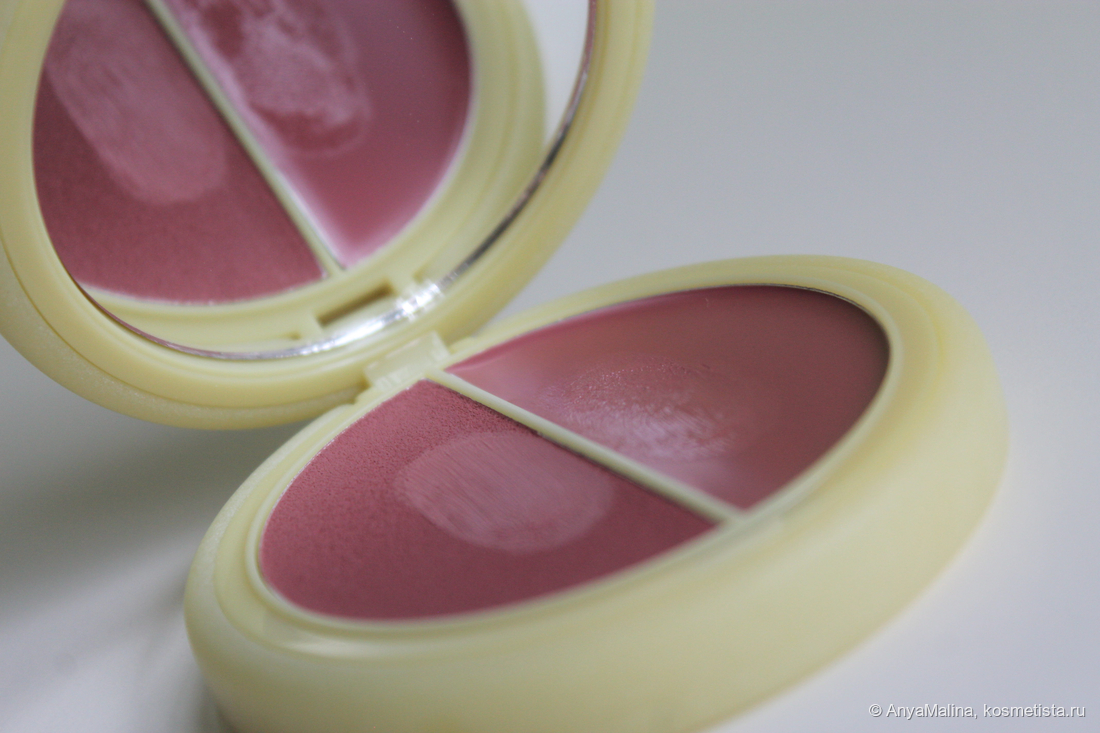 Если бы не надпись, я бы не угадала, что продукт сделан в Италии. Пахнет ванилью и медовой акварелью из детства. Текстура, как и глубина оттенка у румян в разной формуле отличается.