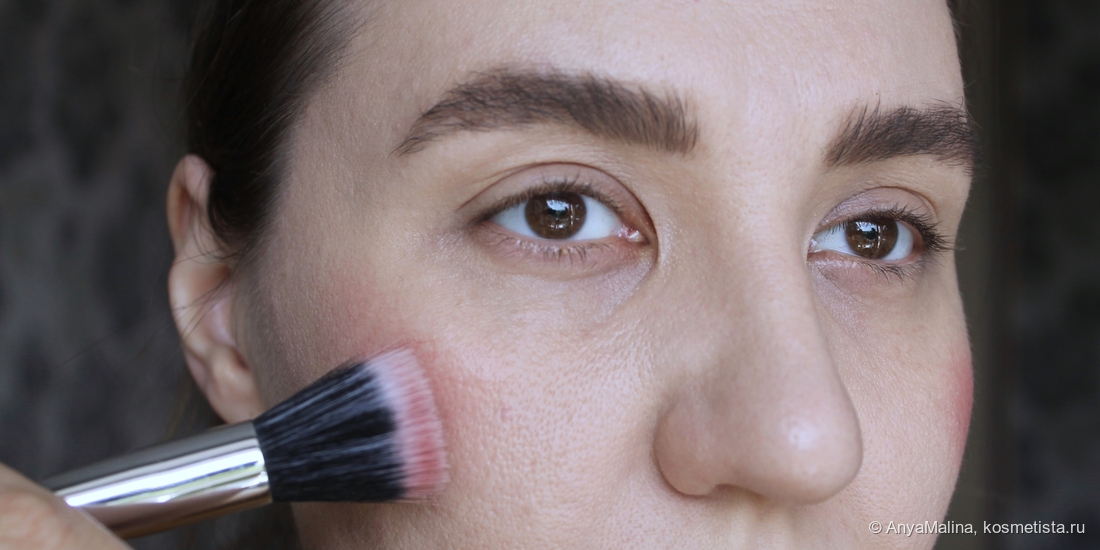Наношу, либо пальчиками, либо спонжем, либо вот такой обычной дуофиброй — всяко хорошо, без пятен, без подчеркивания рельефа. Кстати, несмотря на кремовую формулу, румяна можно как сразу на кожу или тон, так и на пудру. Никуда не утягивает подложку и результат выходит стойкий. Ниже макияж с матовой и с сияющей текстурой. Как основа для сухих румян тоже годятся, проверяла.