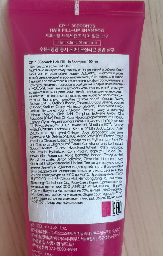 В итоге мне повезло, и я нашла для себя идеальный безсульфатный шампунь, от корейской марки Esthetic House: CP-1 3Seconds Fill-Up.