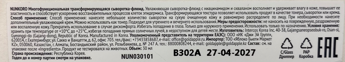 Многофункциональная трансформирующая сыворотка-флюид watermilk fluid-to-cream serum NUNKORO