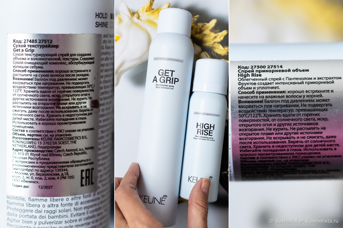Баночки отKeune: Keune High Rise Root Volumizing Spray; Keune Get A Grip Dry Texturizing Spray
