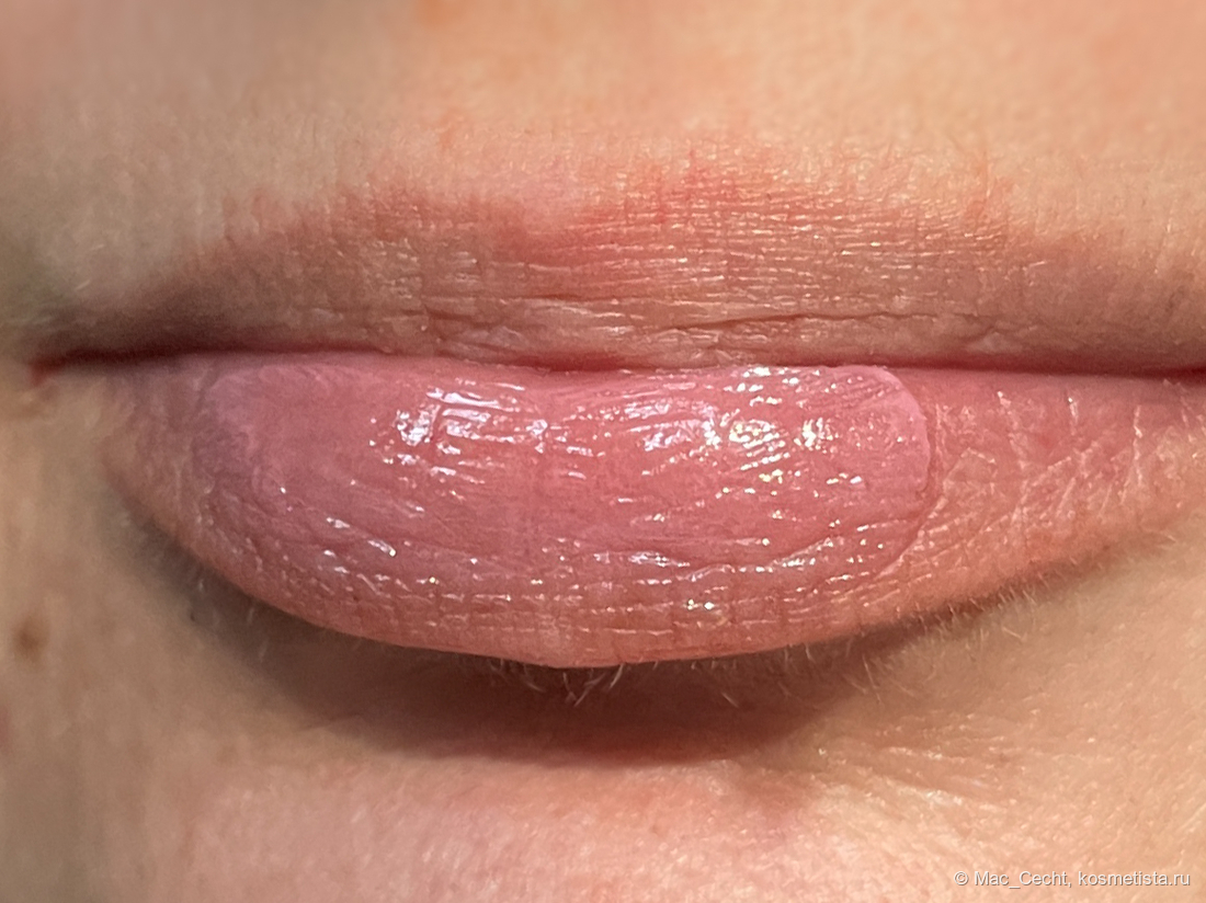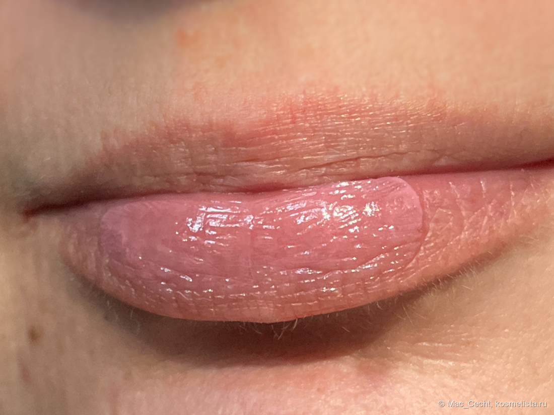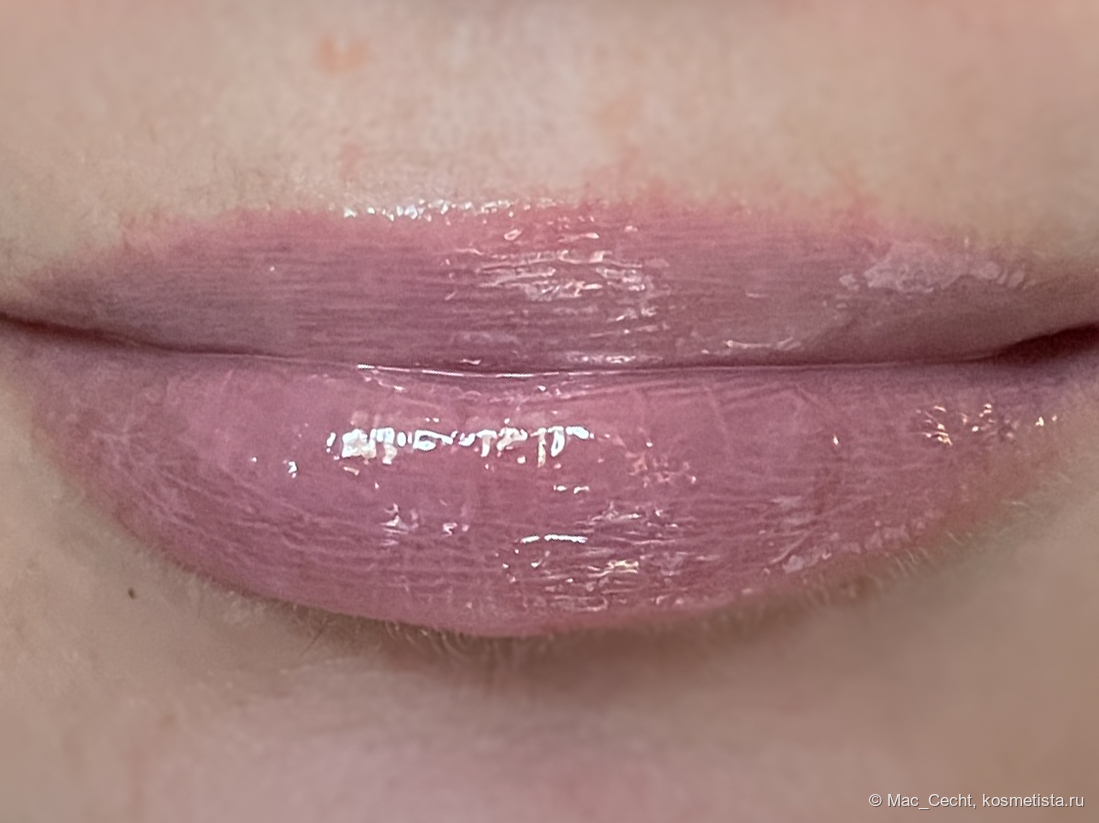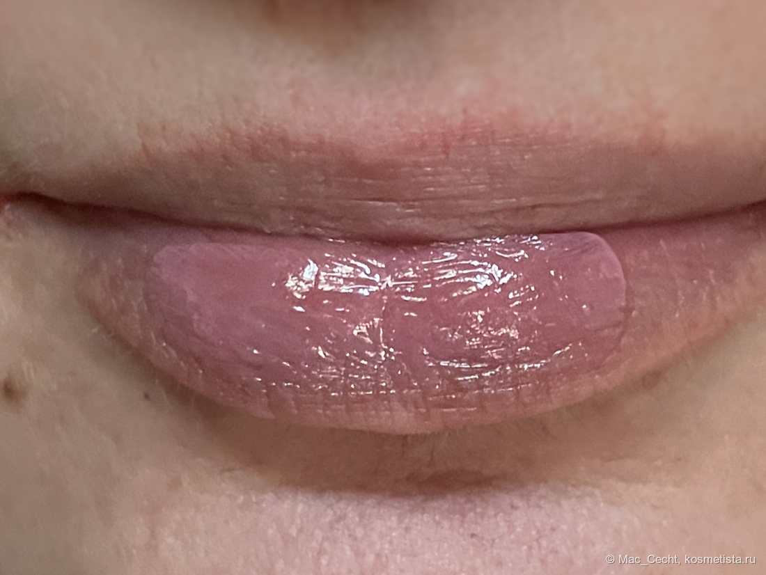 При наслаивании проступает больше лиловинки — в один слой плампер, по сути, дажет губы просто влажными.