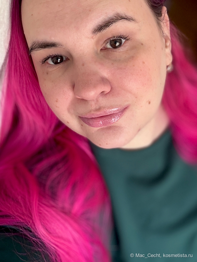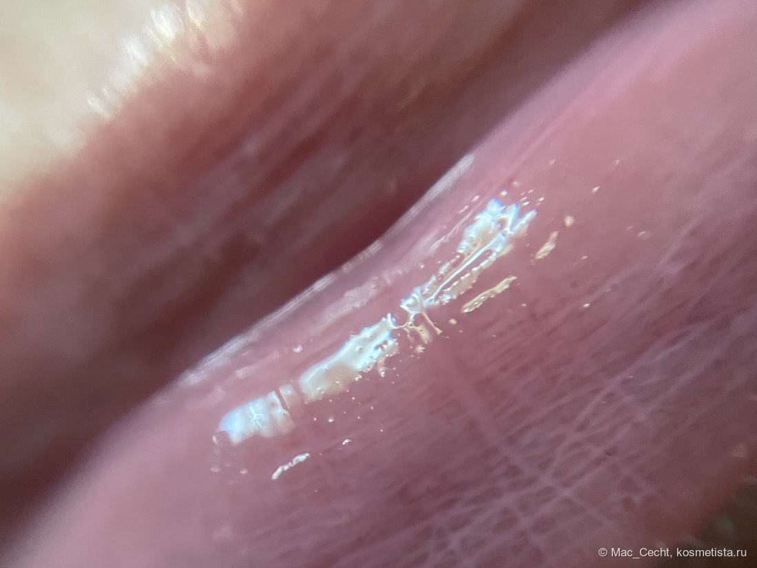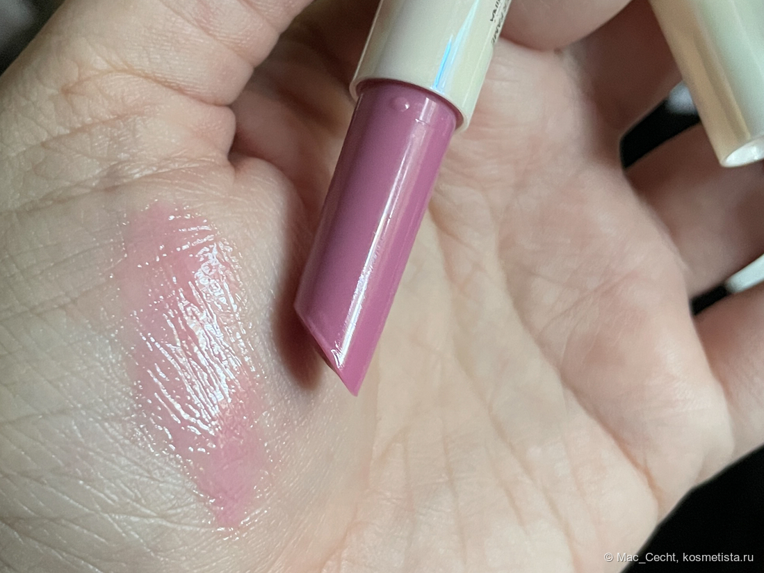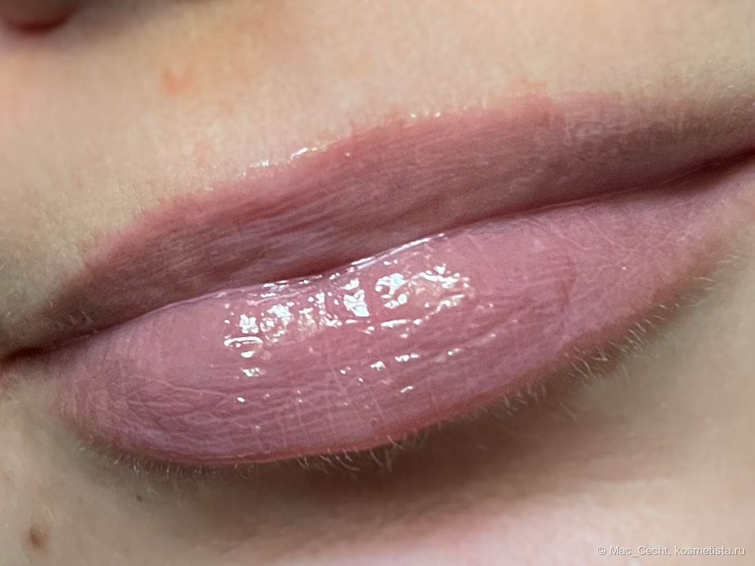 При наслаивании проступает больше лиловинки — в один слой плампер, по сути, дажет губы просто влажными.