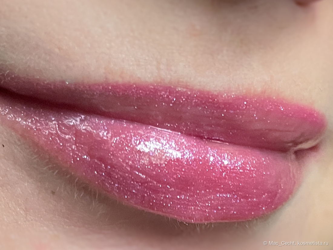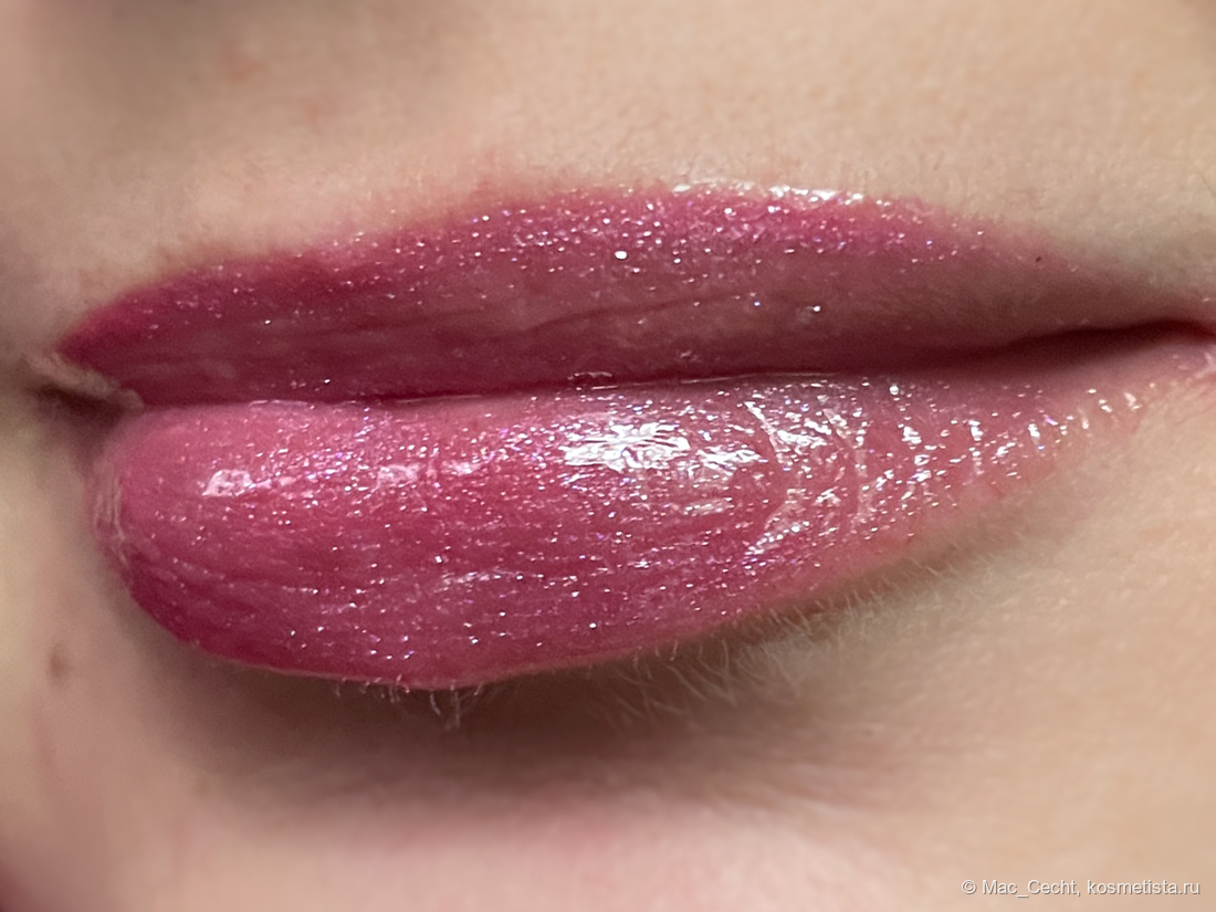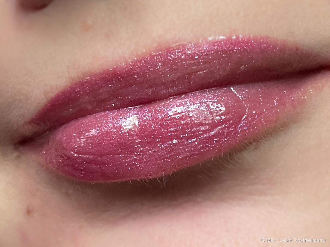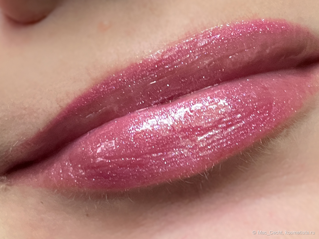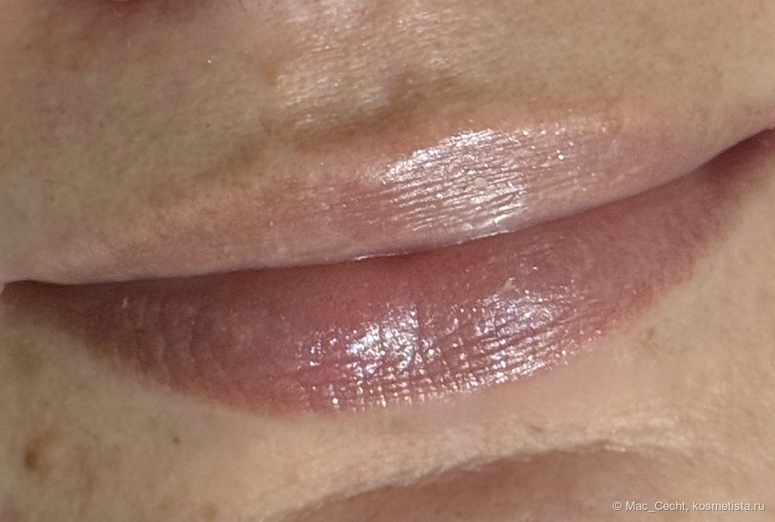 Текстура у блеска очень приятная. Наверное, он самую каплю липковат, но для меня это всегда плюс. Губы точно не склеивает.