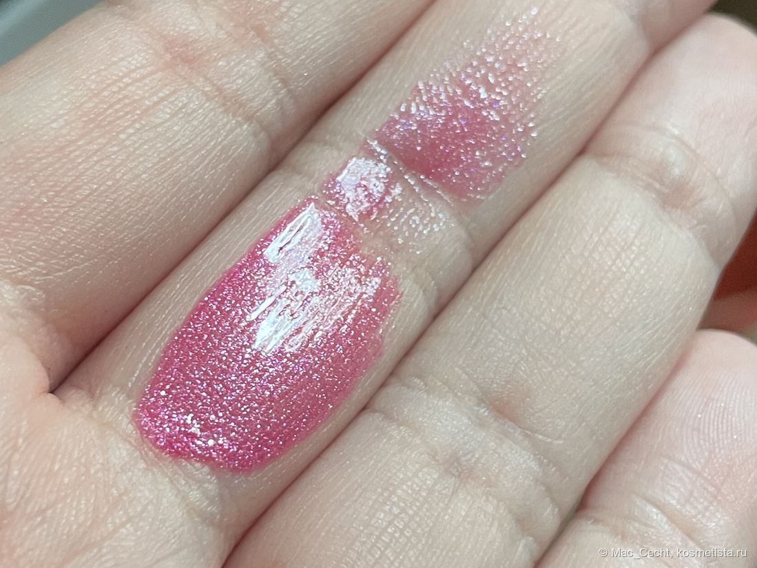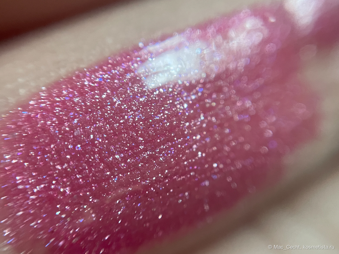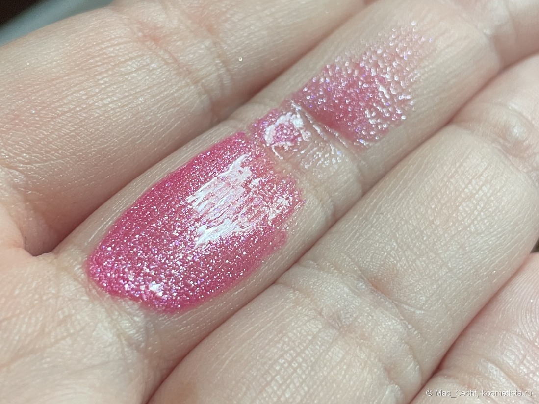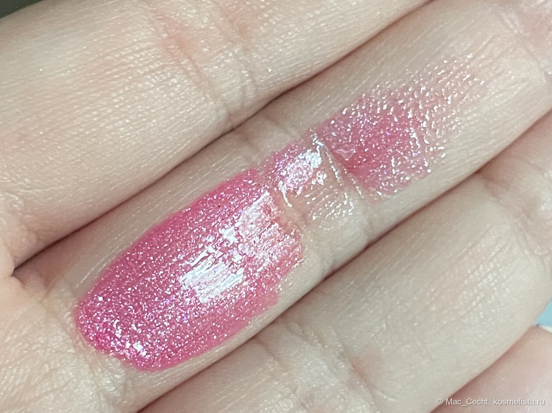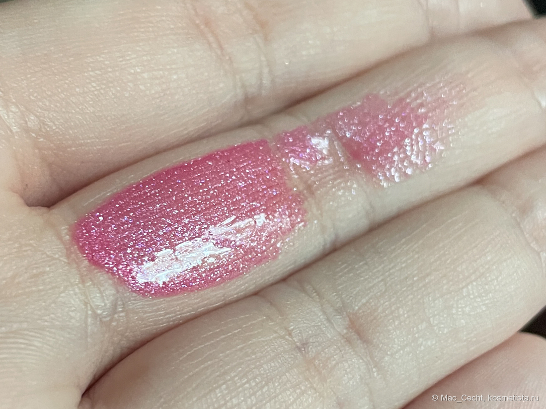 Текстура у блеска очень приятная. Наверное, он самую каплю липковат, но для меня это всегда плюс. Губы точно не склеивает.