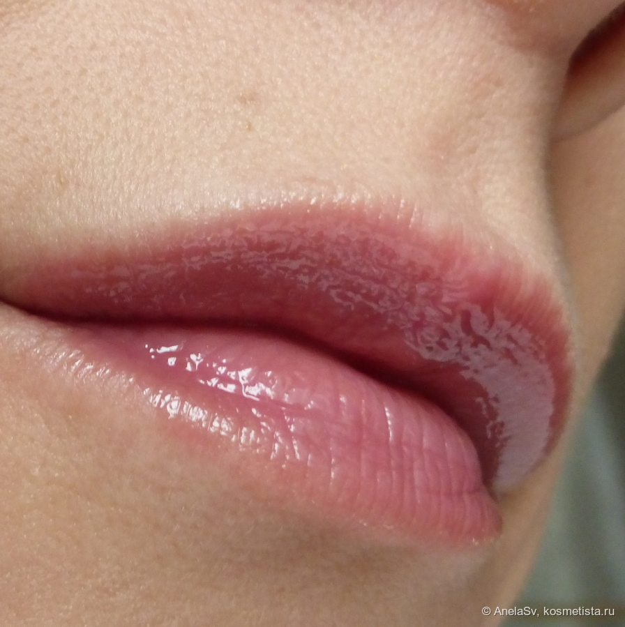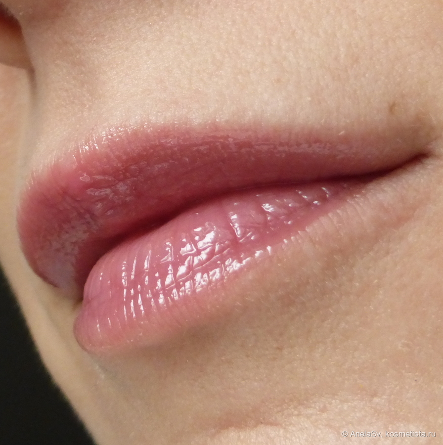 Это нечто среднее между блеском и бальзамом-желе, очень приятная обволакивающая текстура, которая легко наносится. Аппликатор удобнейший — наносит одним мазком. Самое главное, что я боялась — цвет будет наноситься неровно. Но здесь такого нет и в помине — очень ровное нанесение с первого раза, без затеканий в складочки и утекания за контур.