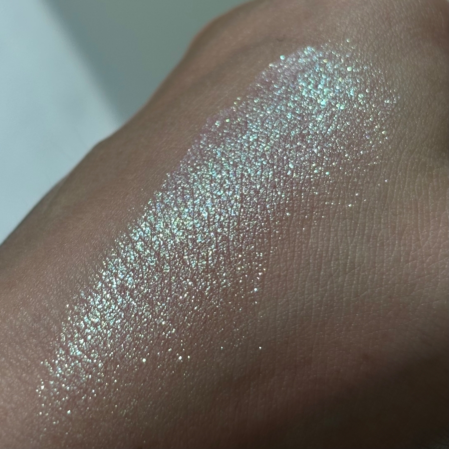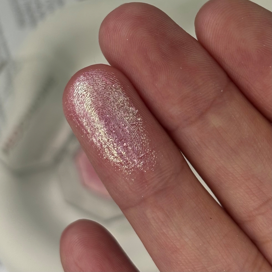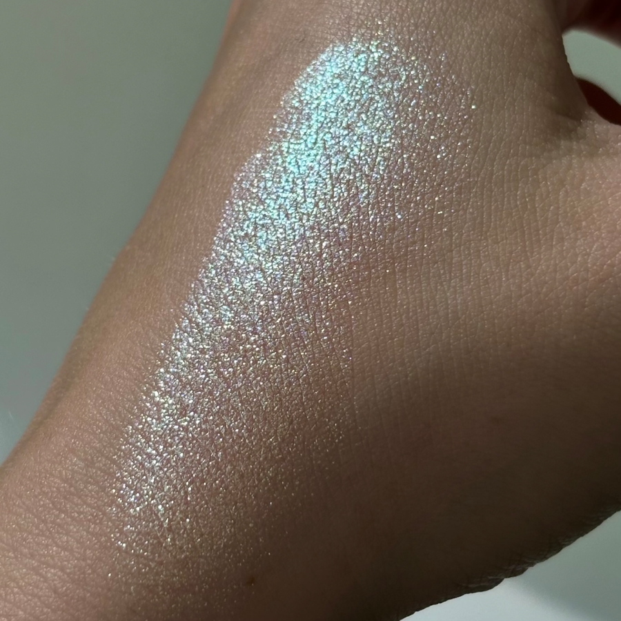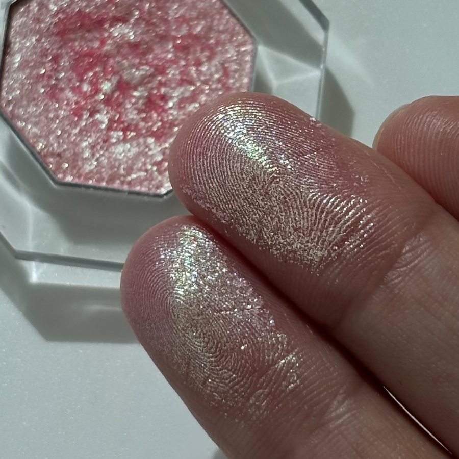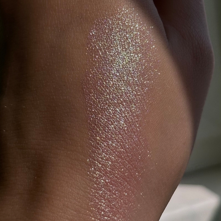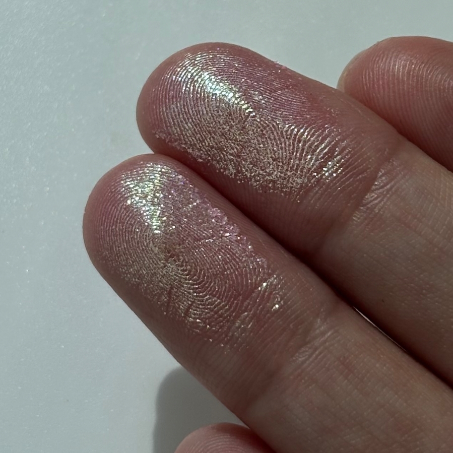 Текстура приятная, мягкая, не шершавая, не рыхлая, не хлопистая, не сыпучая. Сияющие частички тонкие, яркие, не летучие.