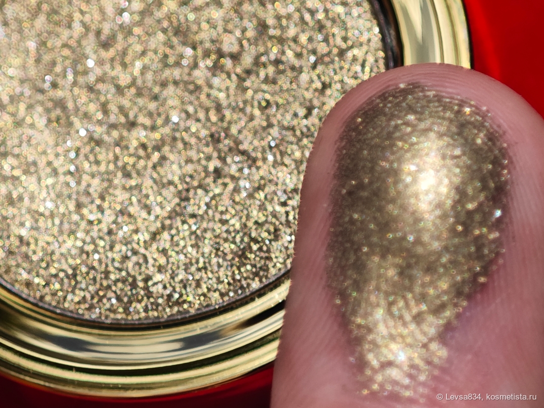 Финиш сияющий металлический, на солнце видны искры, очень красиво. Но отдельных частиц словно и нет, текстура не рыхлая, однородная, но не шёлковая. Как будто частицы все друг с другом тесно связаны плотной базой. Кстати, она не прозрачная.
