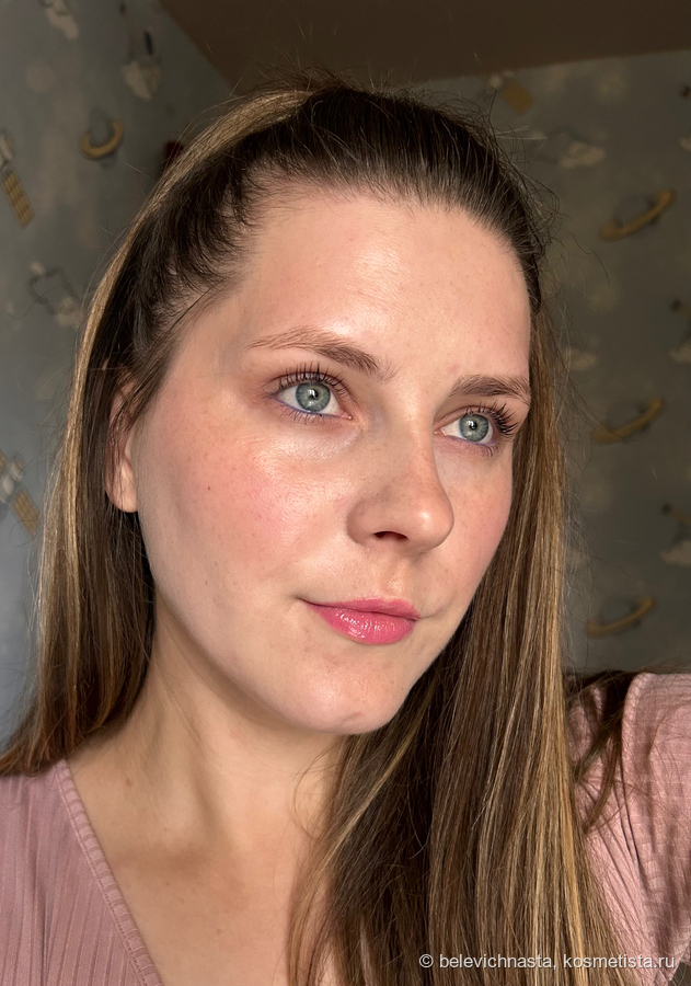 Уже в процессе я заметила, что этот оттенок очень похож на мой натуральный румянец с мороза)