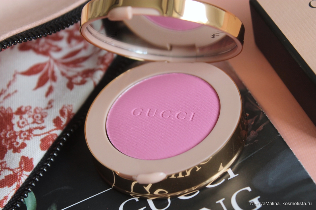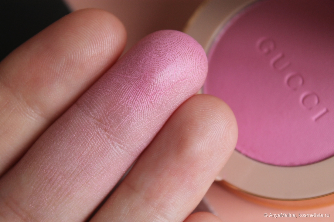 Какие же они ладные, эти ваши Gucci Blush De Beauty в холодном розовом. Румяна нежные, как шелк, мягкие и хорошо пигментированные, при этом почти не пылят. Тиснение стало затираться уже на второй третий раз использования, экономичностью не пахнет. Для понимания мягкой и пигментированной текстуры: