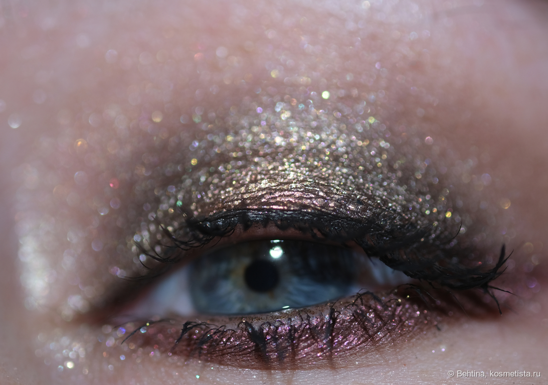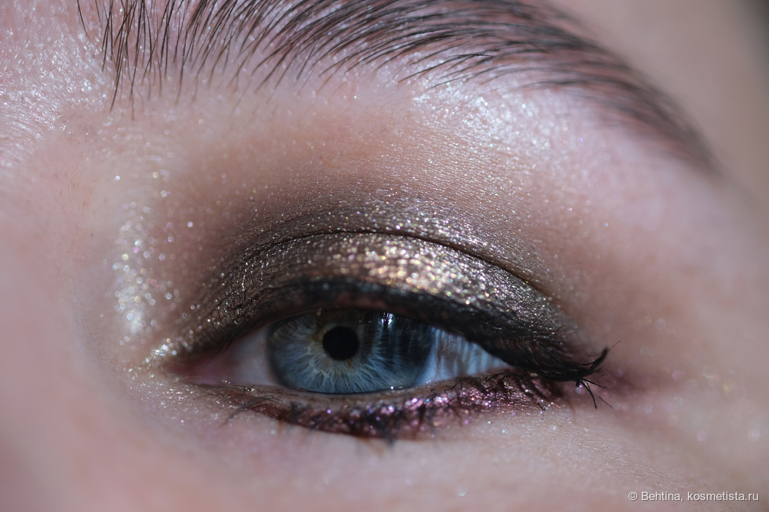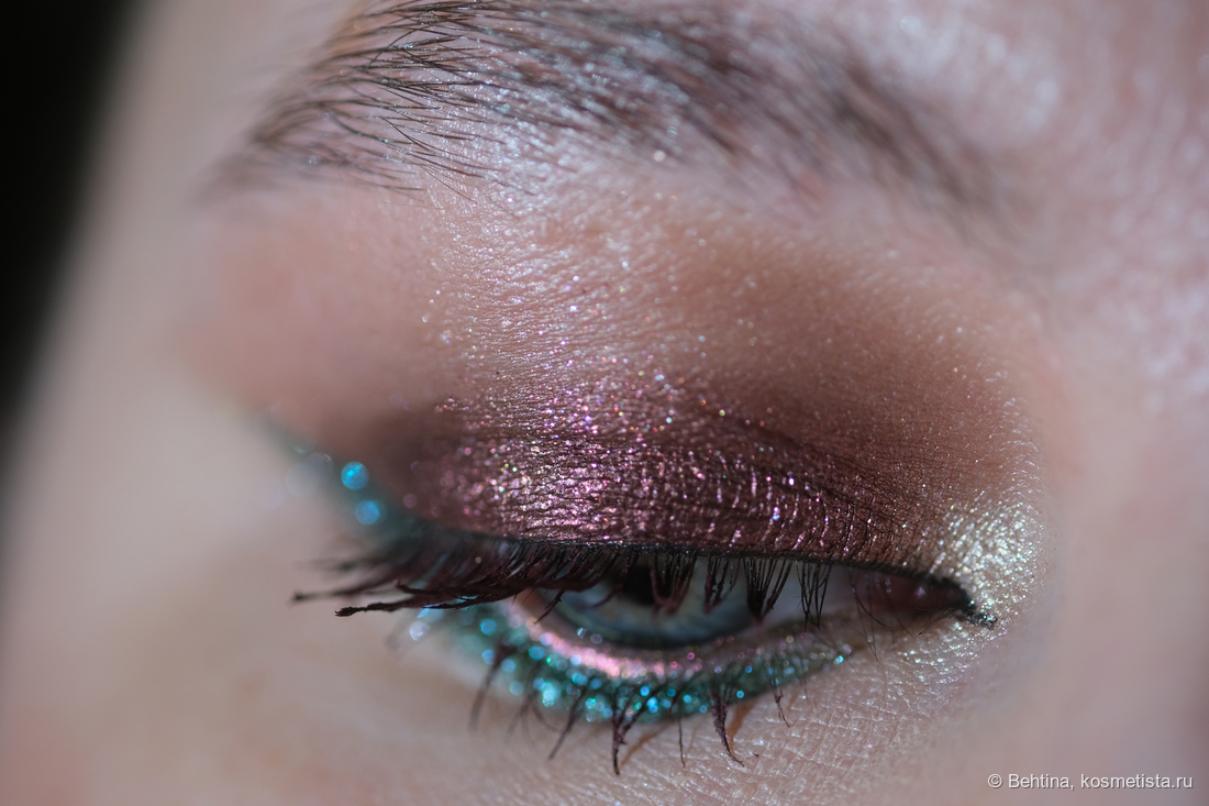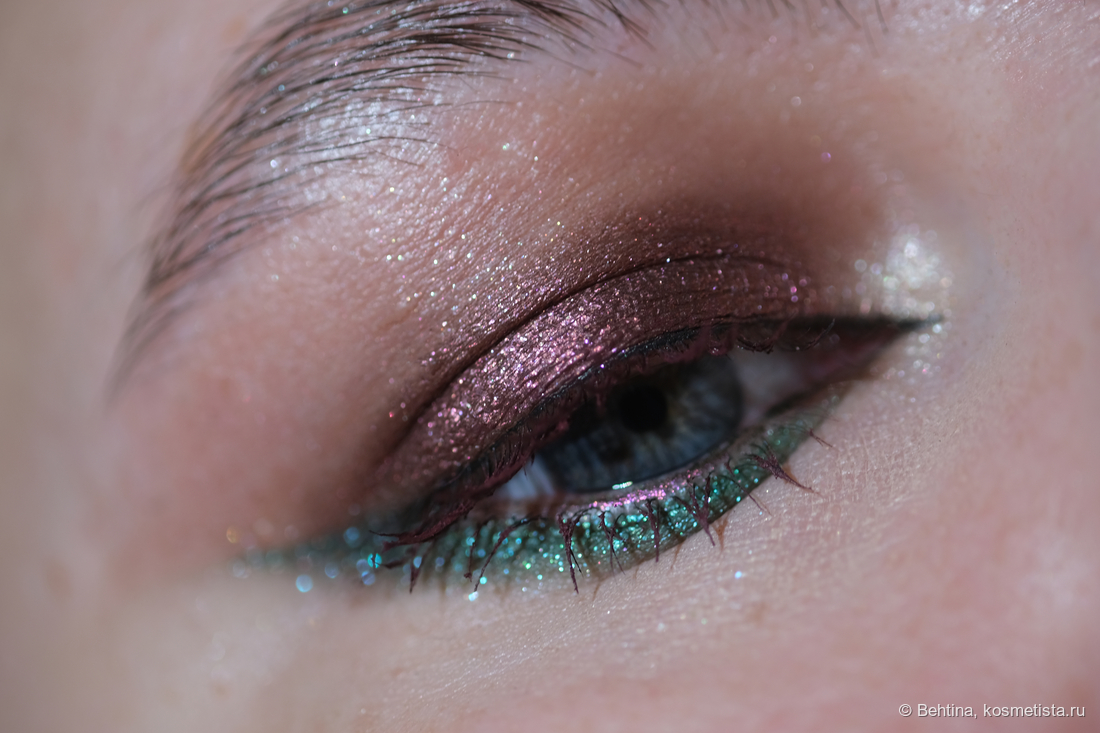 На нижнем веке оттенок из палетки Urban Decay и дуохромный карандаш на слизистой нижнего века.