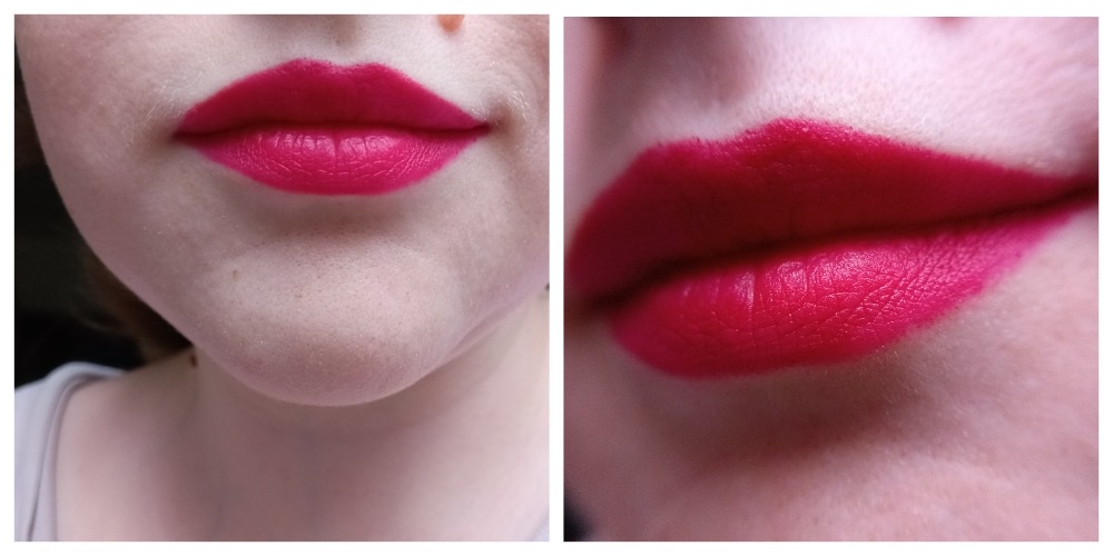 На коллаже ниже использованы оба края. Сначала я очертила контур карандашом, затем заполнила общую площадь губ помадой. Это кстати необязательно. Даже без карандаша помада прекрасно лежит на губах, не растекается по контуру, не расползается в уголках губ. Это скорее дань аккуратности для тех, кто привык пользоваться и карандашами тоже.