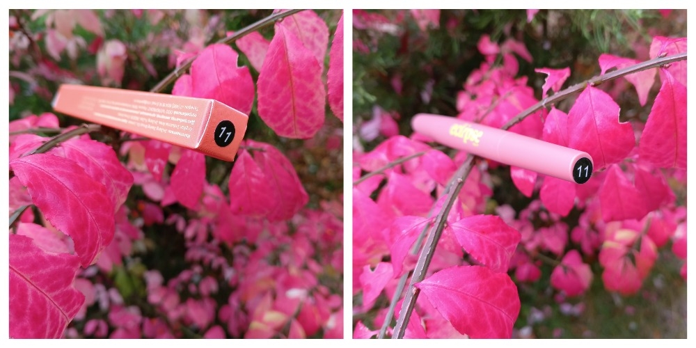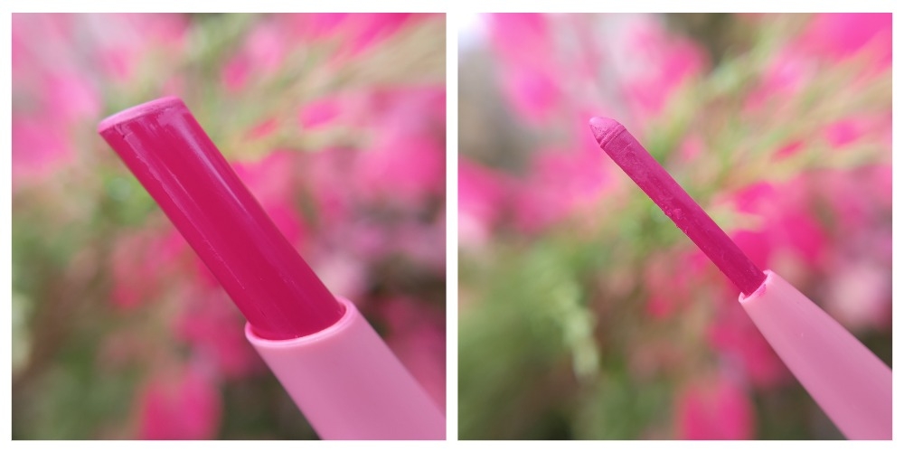Футляр двусторонний. Более толстая сторона это помада, а более узкий край это карандаш. Никаких модных кликеров, оба продукта можно выкрутить до конца и закрутить обратно.