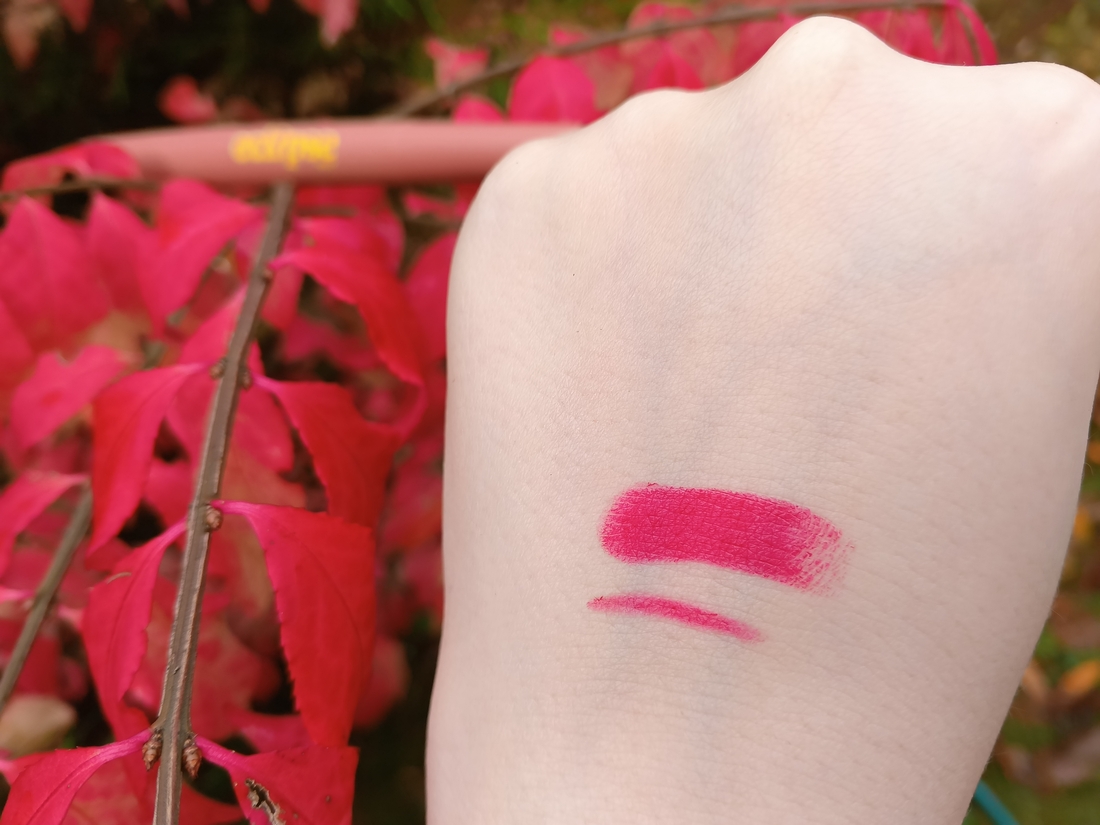 На свотчах ниже внизу карандаш, сверху помада. Оттенки отлично подобраны. Оба продукта кремовые с финишем более матовым. Карандаш может слегка неонить по краям оттенка. Наносятся оба продукта более чем комфортно, легко скользят по губам и при этом имеют хорошую стойкость.