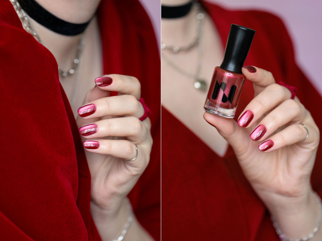 Блик шустрый, собирается быстро, хорошо фиксируется. Я магнитила ребром плоского прямоугольного магнита 10-15 секунд, чтобы блик расплылся. Такой способ кажется мне самым эффектным для этой серии. Безусловно, красиво будет и градиентом, и бархатом, и солнечным зайчиком.