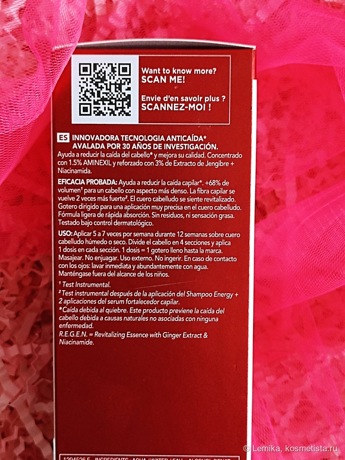 По-русски написано, что сыворотку нужно наносить по 5 капель на пробор, а по-испански — что на пробор нужно израсходовать одну дозу (доза — это пипетка, заполненная до черты). Я расходую по пять капель на пробор, и одна доза у меня расходуется на всю голову, а не на один пробор. Может быть, на русском языке как раз правильно всë написано, и я просто неправильно перевожу текст с испанского?