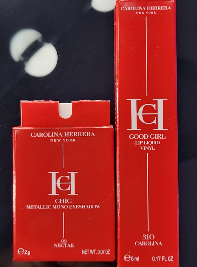 «Все побежали и я побежал» — так я могу охарактеризовать причину, побудившую меня совершить покупку этой парочки от Carolina Herrera. После постов Levsa834 и Vaigosh сайт для покупки просто открылся сам по себе ( не виноватая я)). Выбрала я виниловую жидкую помаду Good girl The lip liquid vinyl 310 Carolina и однушку теней Chic Metallic mono eyeshadow 09 Nectar.