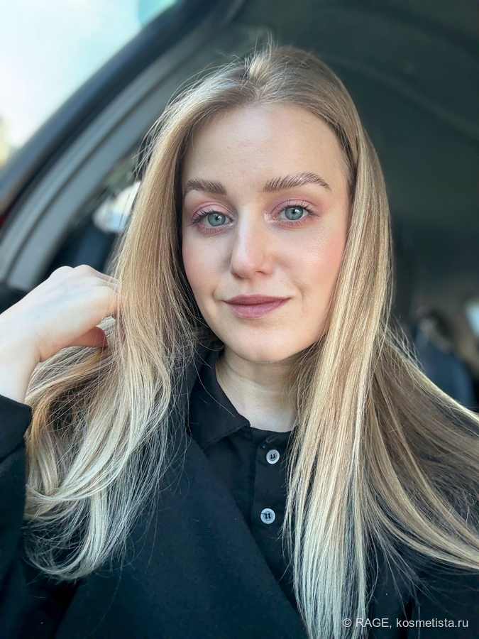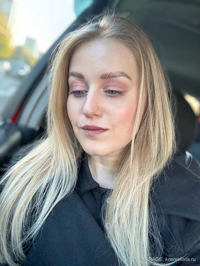 Поведение на губах безупречное: шелушения и сухие участки не подчёркнуты, пигмент в складки и морщинки провалился.
