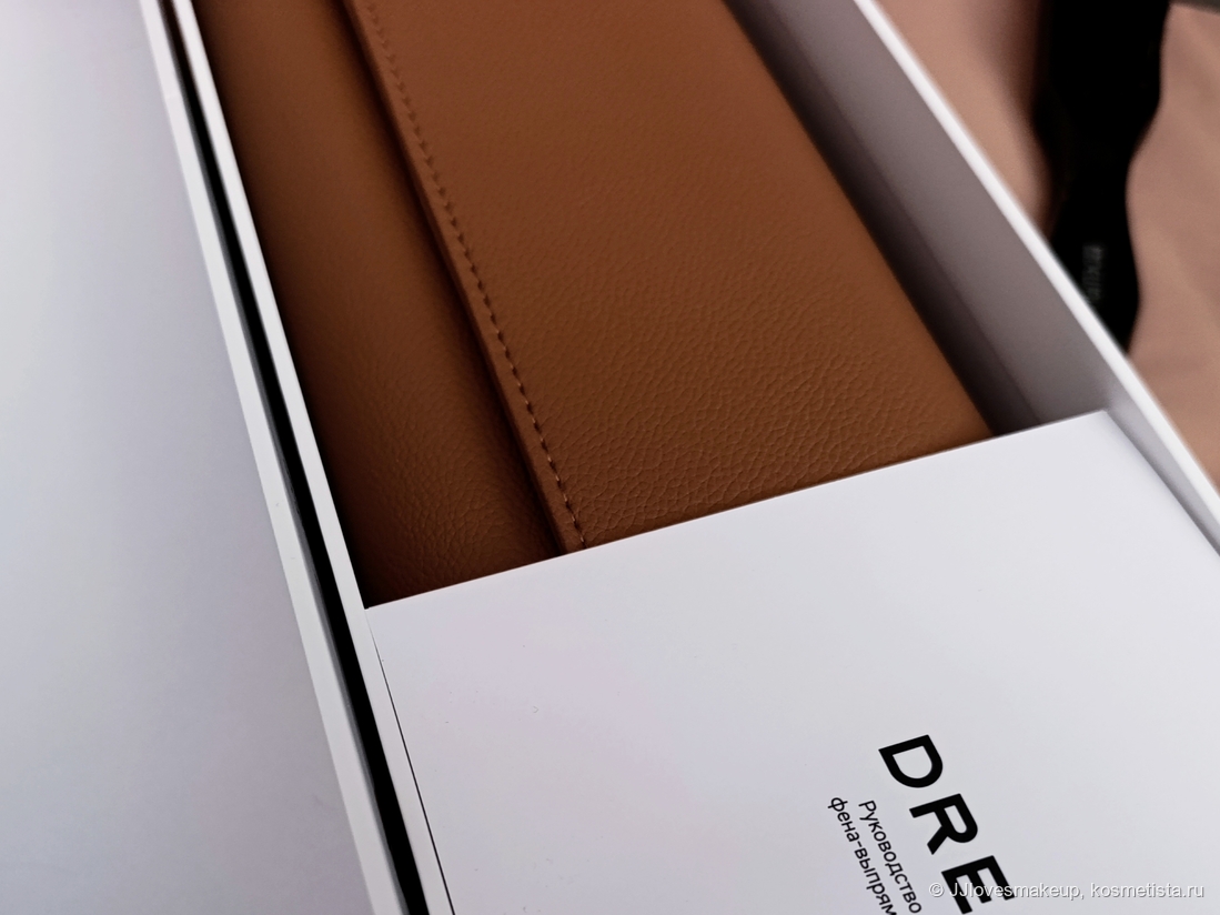 Чехол оснащён магнитами, они быстро схлопываются, чтобы сфотографировать его в открытом виде у меня было несколько секунд. Внутри лежит сам выпрямитель (в подложке того же мягкого коричневого цвета), инструкция и шнур — всё в защитной обёртке.