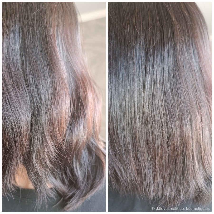 Вообще у Вас «до» прекрасно лежат волосы! Лёгкие волны, я бы такие не вздумала распрямлять) а вот «после» волосы не совсем выпрямились, будто сил у этой дуйки не хватило. Или больше времени надо.